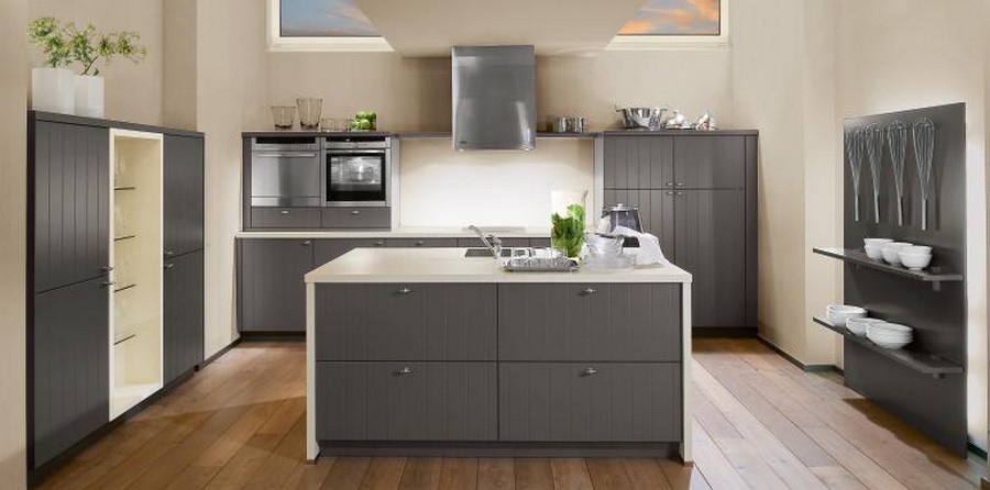 Kitchen Nizza 331 from the German manufacturer Bauformat. Kitchen in classical style, facades of MDF presented in a graphite color version. Interesting-solving elements of furniture - suspended inner shelves, the facades are made of durable and modern materials.