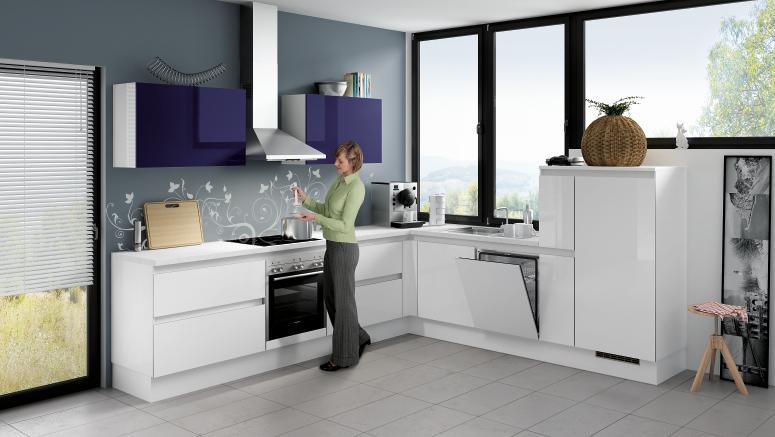 Kitchen Manhattan-cp 606 from Bauformat. German quality furniture from natural materials: solid wood, MDF. Modern design in a simple color palette, the combination of white with gray. Kitchen for those who like order and prefer furniture with no extra parts, at the same time maximum practicality.