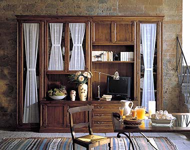 Cabinet Mobile Quadro from Italian manufacturer DOLFI. The frame is made from solid wood. A model with drawers, TV and books, open shelves and swing doors. The final wax finish. A chic choice for your living room or office a rustic look. Colours in stock.