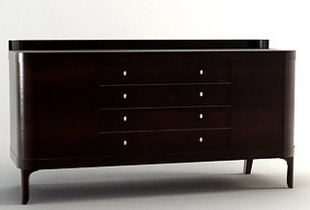 Chest American producer Barbara Barry. Rounded at the sides the frame is made of wood and painted with dark brown lacquer. Model with pull-out drawers and swing doors are convenient and practical to use.