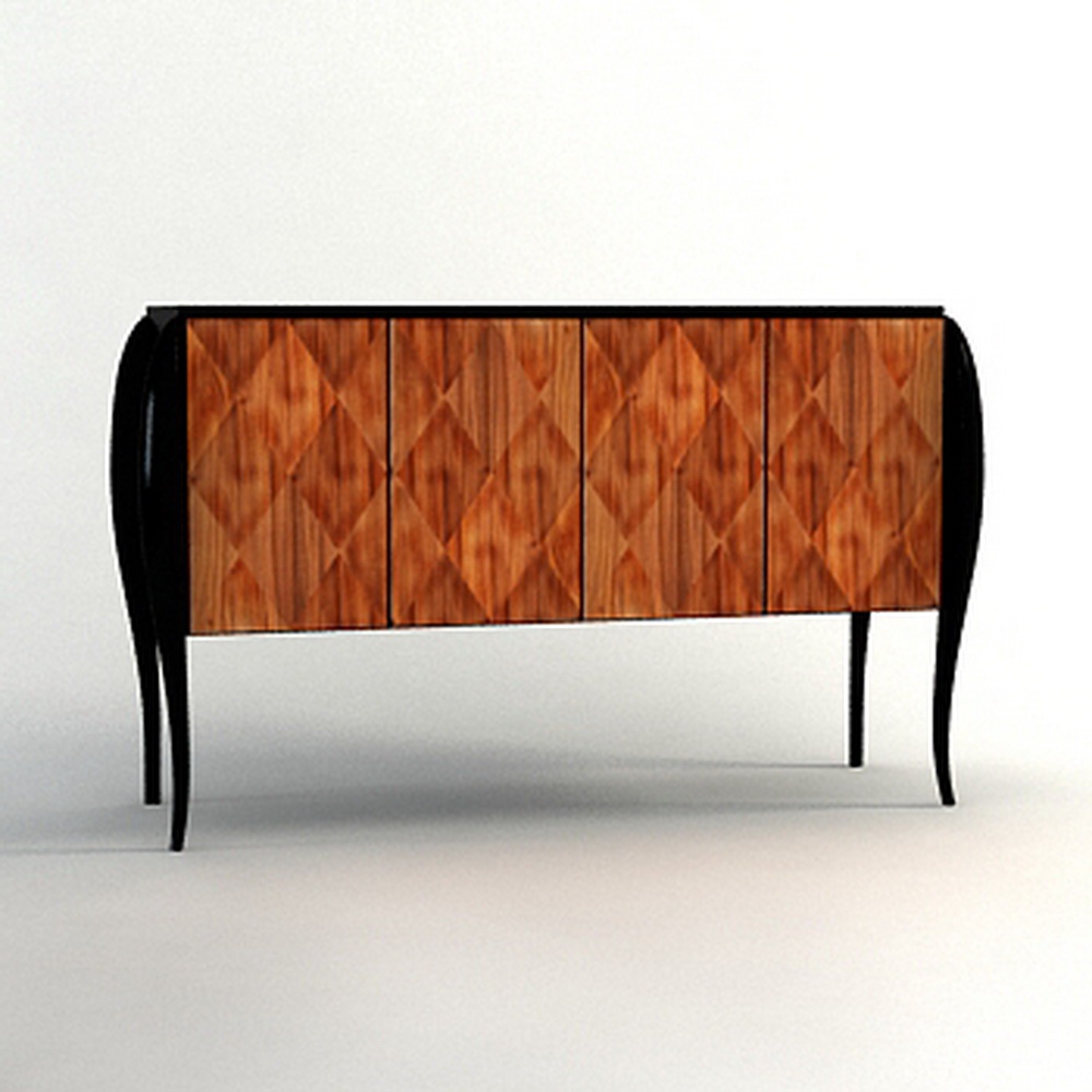 Stand American producer Barbara Barry. Chest high figured legs are made of solid wood. The surface of the hinged door made of veneer covered with a colourless varnish. Comfortable and practical model is the perfect solution for an interior in art Deco style.