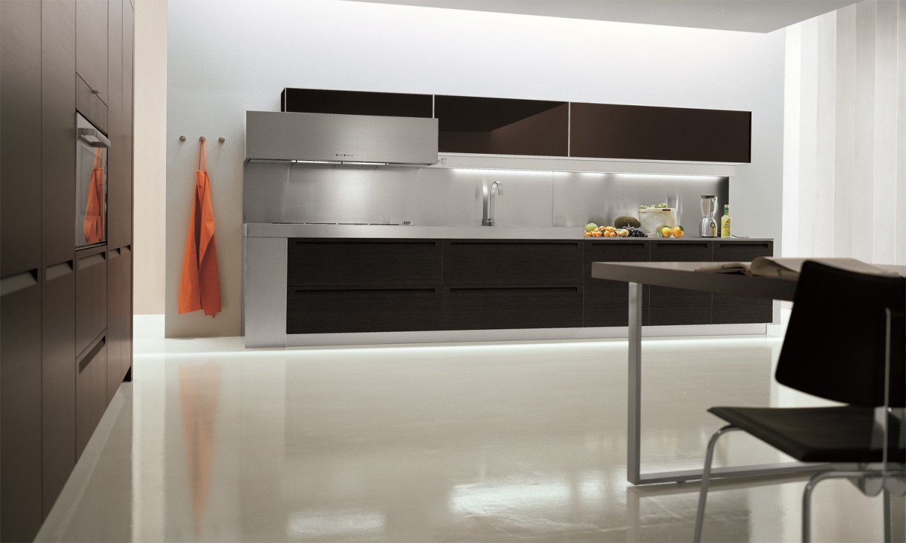 Extra kitchen by Italian manufacturer Doimo Cucine. Made of wood, MDF and metal. Finishing of facades is made of plastic and aluminum. The table top is made of stainless steel or natural stone. All the elegance of high - tech style is possible thanks to the exceptional flexibility of the constituent elements.