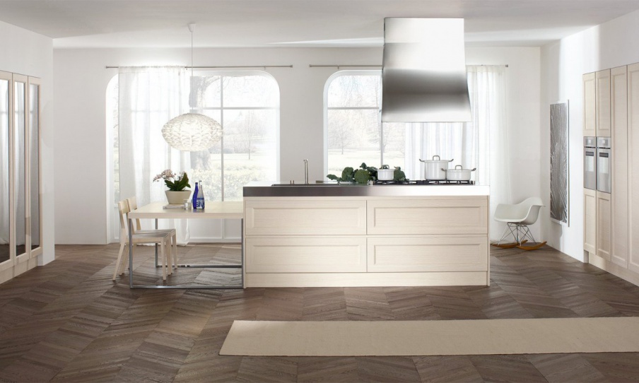 Kitchen Glamour from Italian manufacturer Doimo Cucine. Made of solid wood. The stainless steel countertop. This set is equipped with ample cupboards, doors without handles opened by pressing lightly. Built-in appliances. Colors in the catalog of the company.