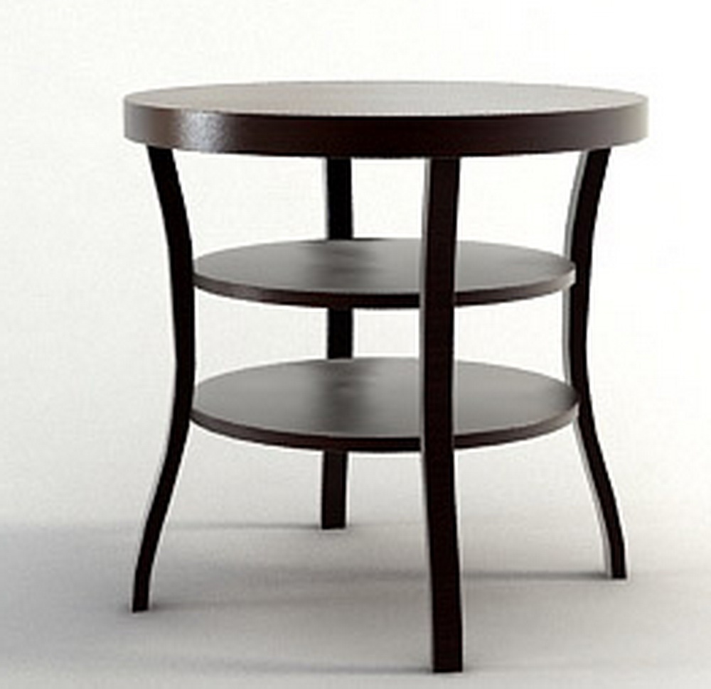 Coffee table American producer Barbara Barry. The model for modern interiors. Round table top and two lower shelves made of natural wood. The legs are curly form. Color black or choice from manufacturer's catalogue.