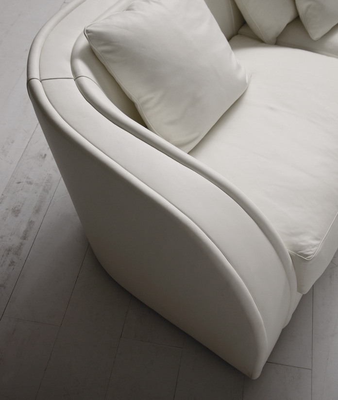 Double the Carmen sofa from Italian manufacturer Opera Contemporary. The model is made in a modern style. The frame is hidden. Low legs are made of solid beech wood. Upholstery textiles or leather from the collection company. Filler - foam and fluff. Complement the design of decorative pillows.
