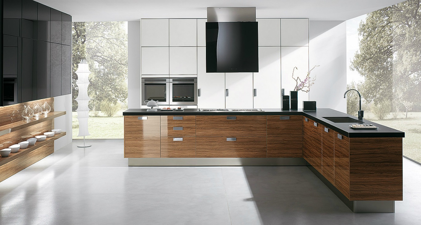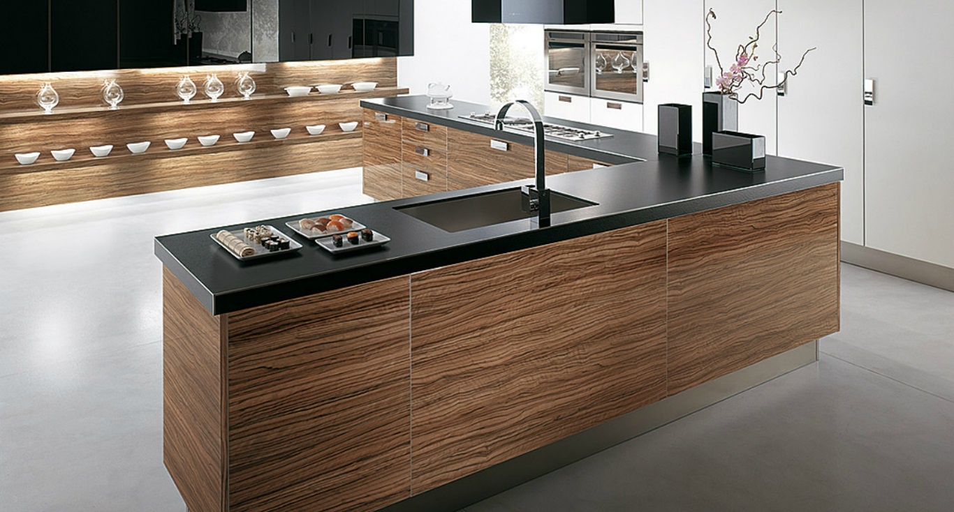 Elba kitchen System by Italian manufacturer Biefbi. Model in the style of minimalism. The headset frame is made from solid wood with veneer Sonam. Built-in appliances. For countertops and work surfaces are offered: marble, granite, artificial stone, stainless steel, glass, including solid wood. Colours in stock.