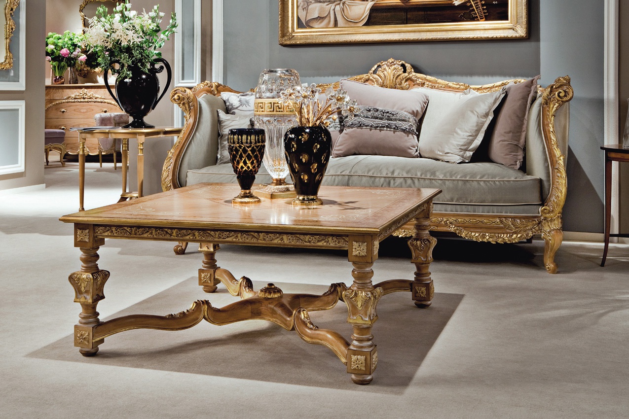 Prestige coffee table from the Italian manufacturer Medea. The model is made from solid wood. Table top square shape high gloss finish. The model is made in classic style.