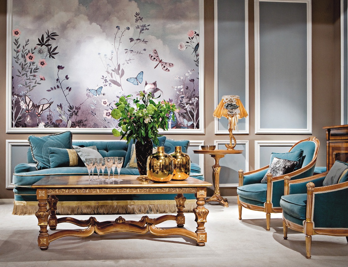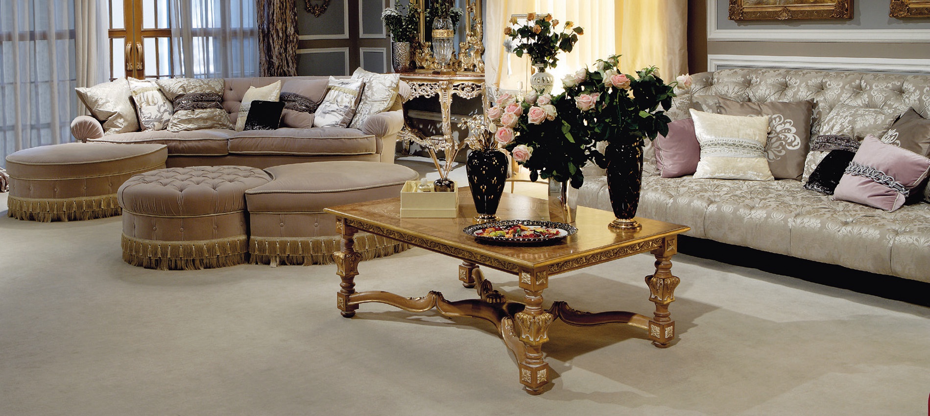 Prestige coffee table from the Italian manufacturer Medea. The model is made of solid wood. Figured legs are decorated with decorative elements Golden color. The model is made in classic style.