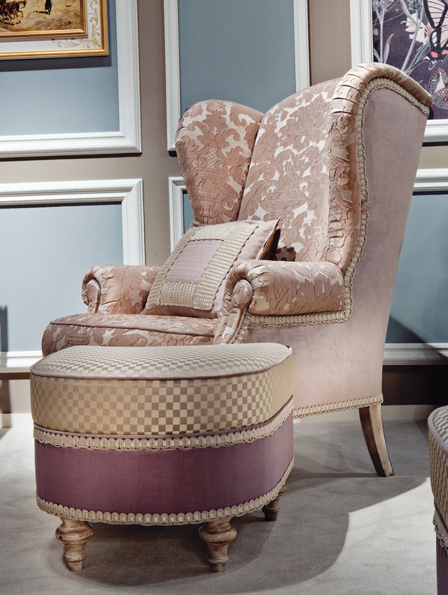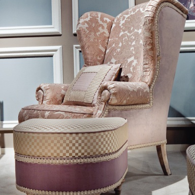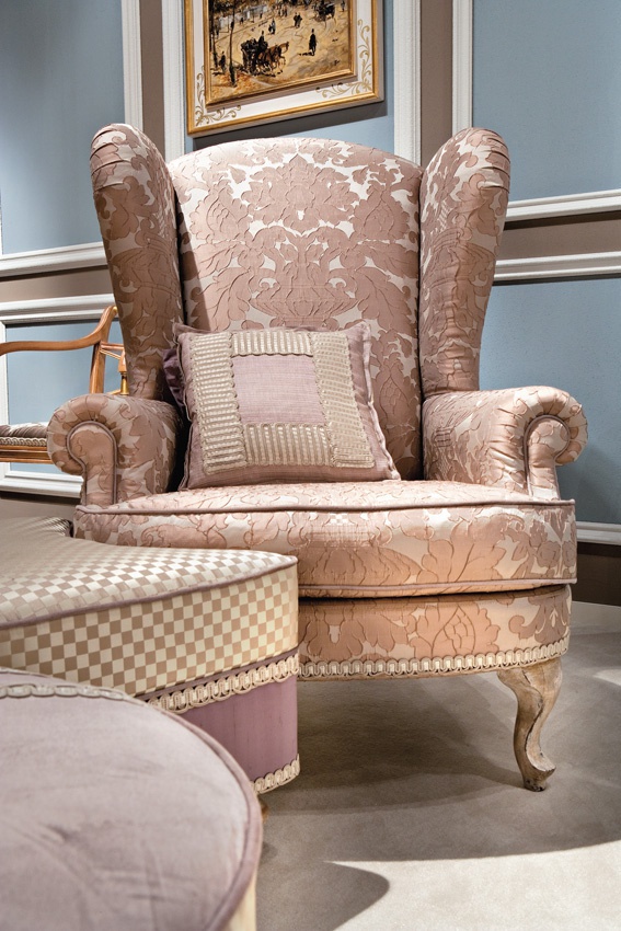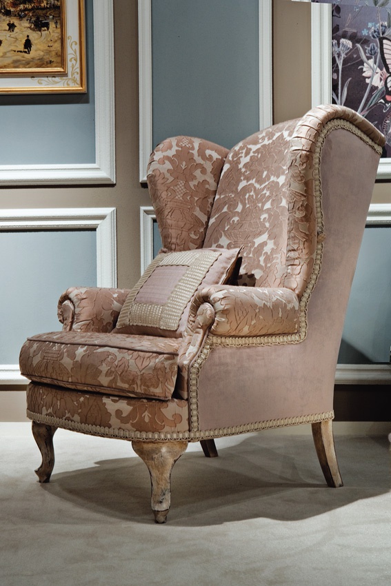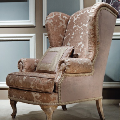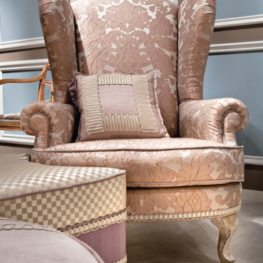 The Prestige armchair from Italian manufacturer Medea. The frame is made from solid natural wood. The model is upholstered in fabric or leather with floral designs and trimmed with delicate braid. A great model for living room in classic style.