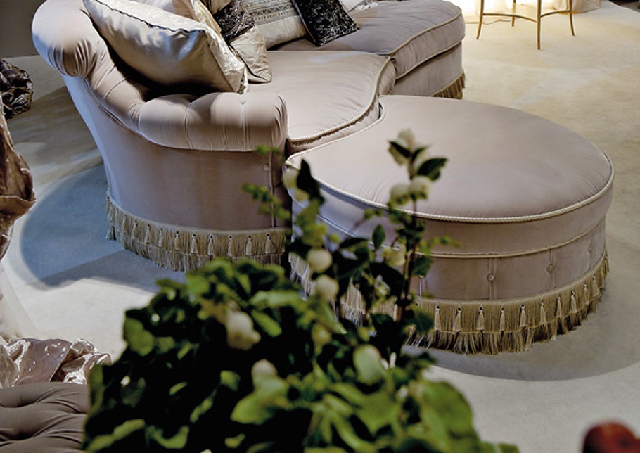 Poof Prestige from the Italian manufacturer Medea. The frame is made from solid wood, upholstery textile/leather from a range of companies. A great model for living room in classic style.