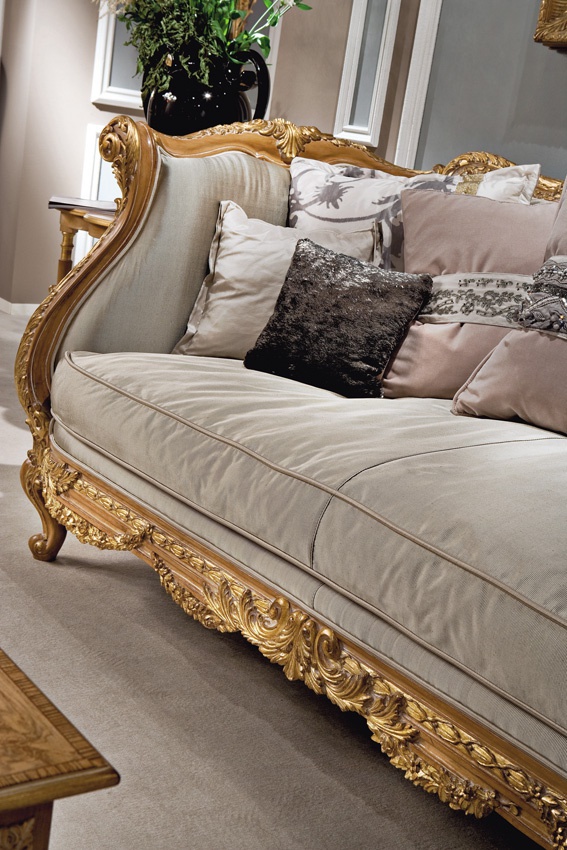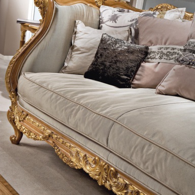 Prestige three-seater sofas from the Italian manufacturer Medea. The frame is made from solid wood, upholstery-cloth/leather from a range of companies. The model is decorated with hand-carved. The perfect choice for a living room in classic style. The design of complementary decorative pillows.