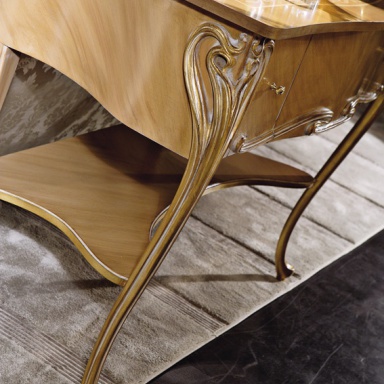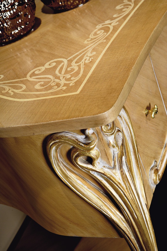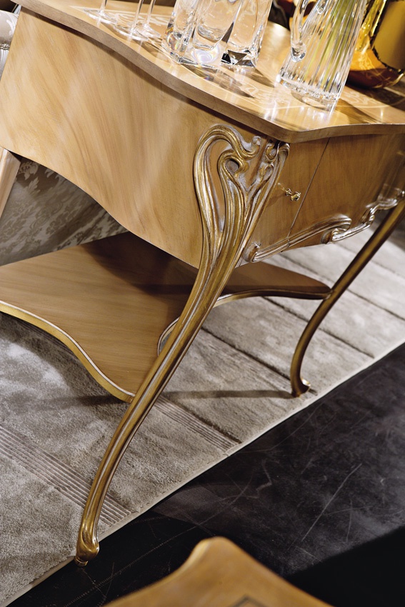 Console from Prestige Italian manufacturer of Medea. The legs are made of wood and decorated with gold leaf. The model is decorated with hand-carved. The console is made in a classic style.