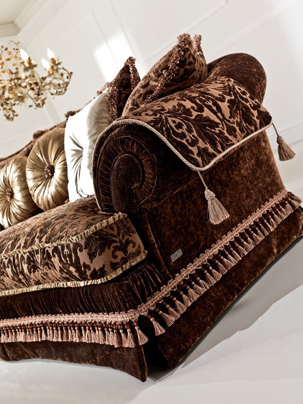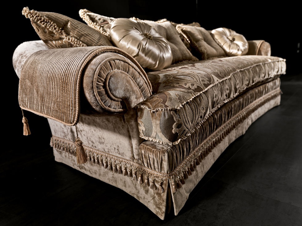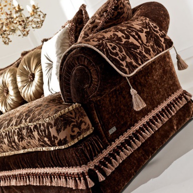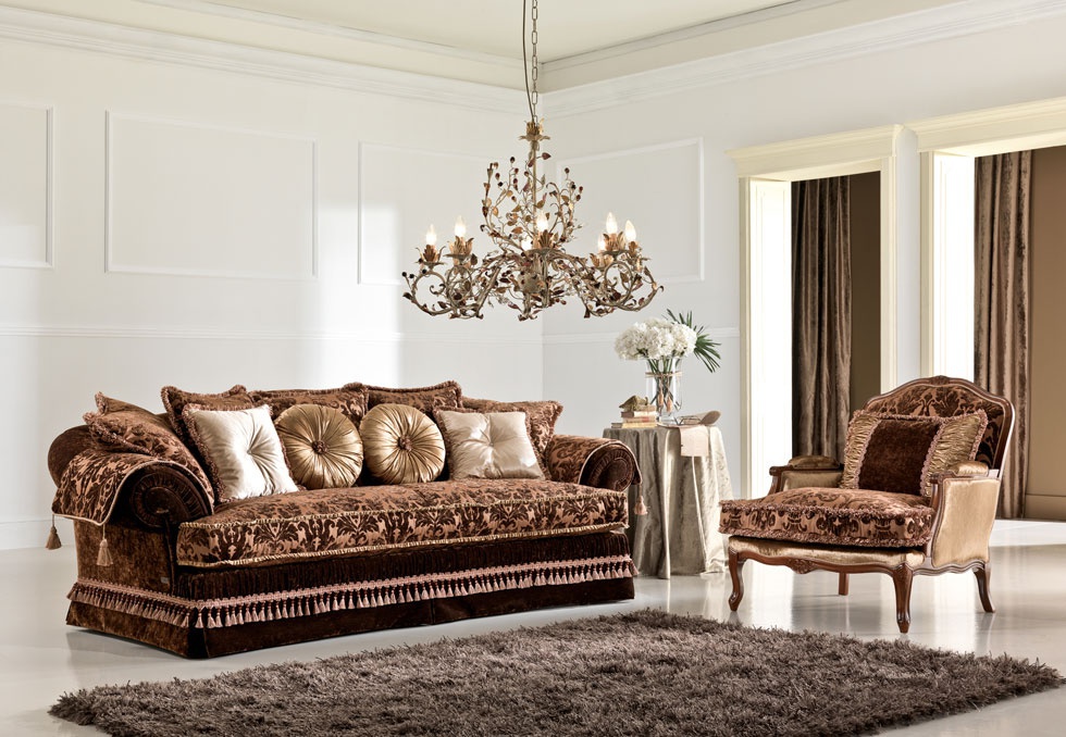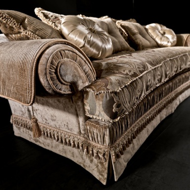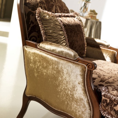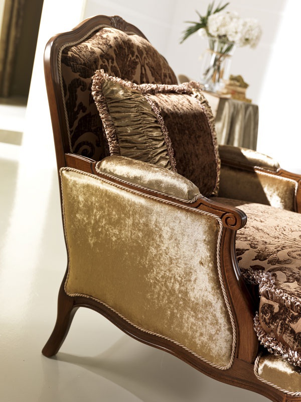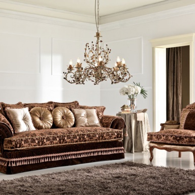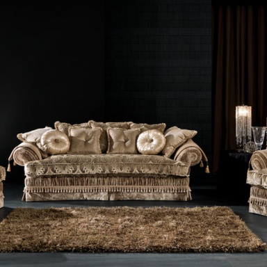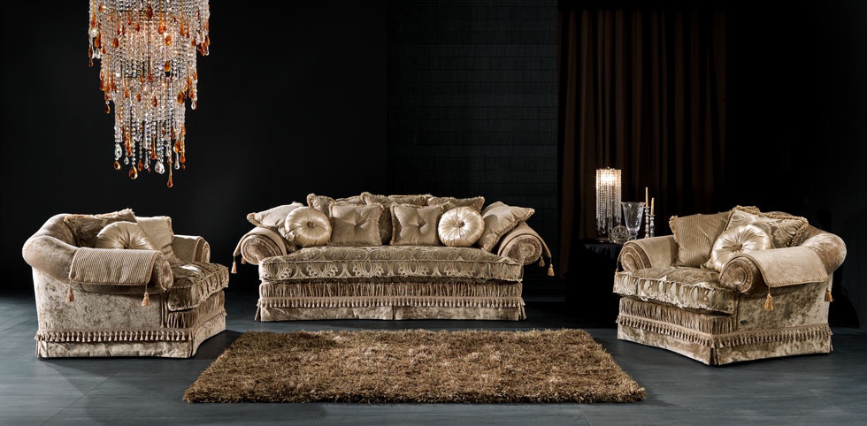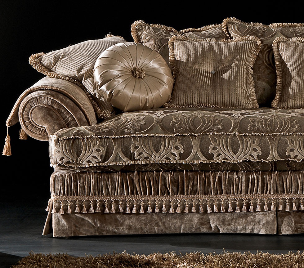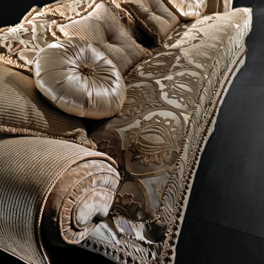 Sofa set Napoleoneот Italian manufacturer Keoma Salotti. The model is made on a frame of natural wood. Upholstery textile from the company portfolio. Decorated with handmade carving. Set is made in a classic style. Consists of sofa and armchairs.
