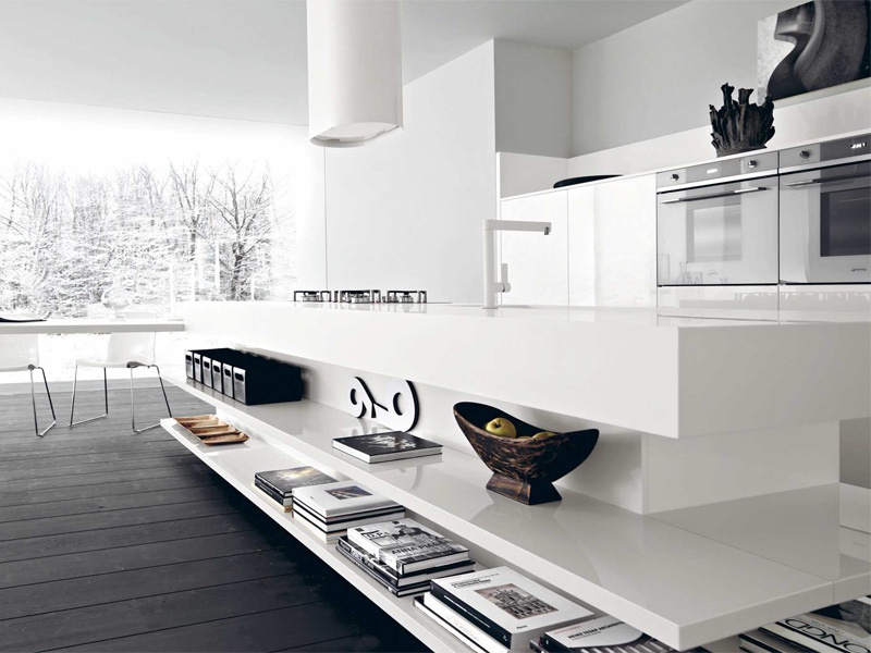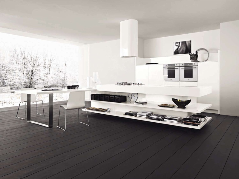 Set for the kitchen by Italian manufacturer Cesar. Includes island and cabinets. The Cabinet is made of solid wood. The finish offers a glossy white lacquer. Practical and functional model is the perfect solution for any interior.