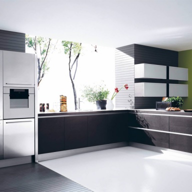 Set for the kitchen by Italian manufacturer Cesar. The model is made in a modern style. The body is made of solid wood. Finish - gloss or Matt lacquer. Cabinets complete with glass doors framed in stainless steel. Table top in white laminate. Is practical and compact.
