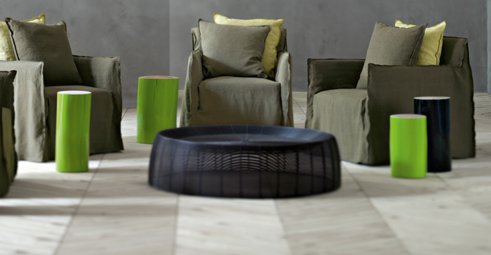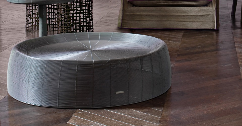 01 Filo coffee table from Italian manufacturer Gervasoni. The body is woven from metal wire. Design model for the modern interior. Colours in stock.