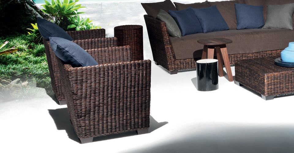 05 Black armchair from Italian manufacturer Gervasoni. Upholstery - textiles. The frame is natural rattan. The model is made in modern style. The perfect choice for terraces. Colours in stock.