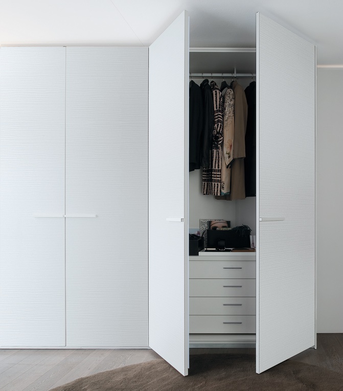 Storage system Surf Italian manufacturer Poliform. The system is designed for storage and shoes. Door trim is embossed laminate flooring . Different colors of matte nail Polish. For the frame of the Cabinet provides 6 kinds of different finishes. Various filling. The perfect solution for modern interior walk-in closet.