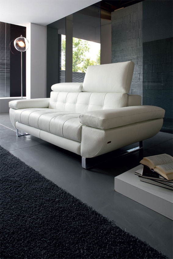 Sofa bed Yana from the Italian manufacturer Keoma Salotti. The frame is made of wood. Legs made of aluminium. Upholstery leather from the range of the manufacturer. Perfect for a day of rest – sitting, lying, reclining, lounging on the pillows. Modern design easily fits into any European travellers. The model can be easily transformed.