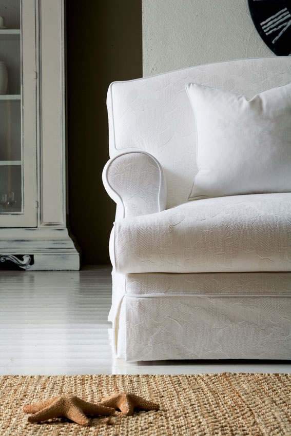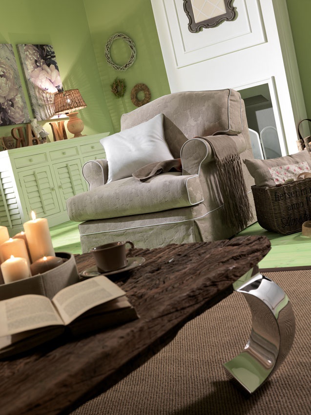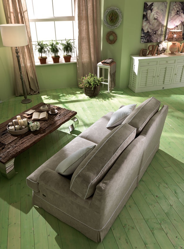 Sofa set Grecale from the Italian manufacturer Keoma Salotti. Model in the style of Provence consists of a sofa, coffee table and armchairs. Made with soft armrests with removable cushions and covers. Material - solid wood, textile and foam. Colors in the catalog from the company portfolio.