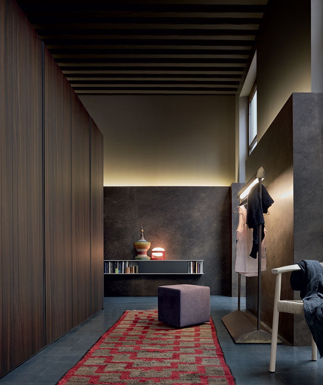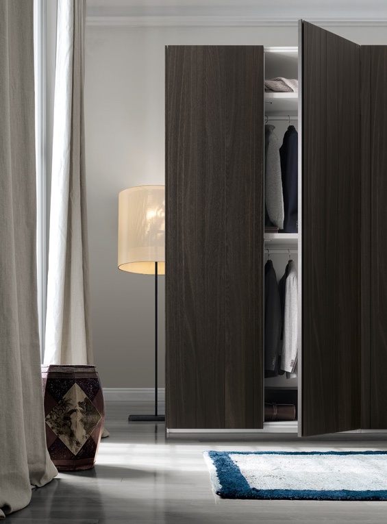 Storage system Stratus Italian manufacturer Poliform. Presents a system for storage with sliding or swinging doors. Color in dark or light wood tone. Made in a modern style.