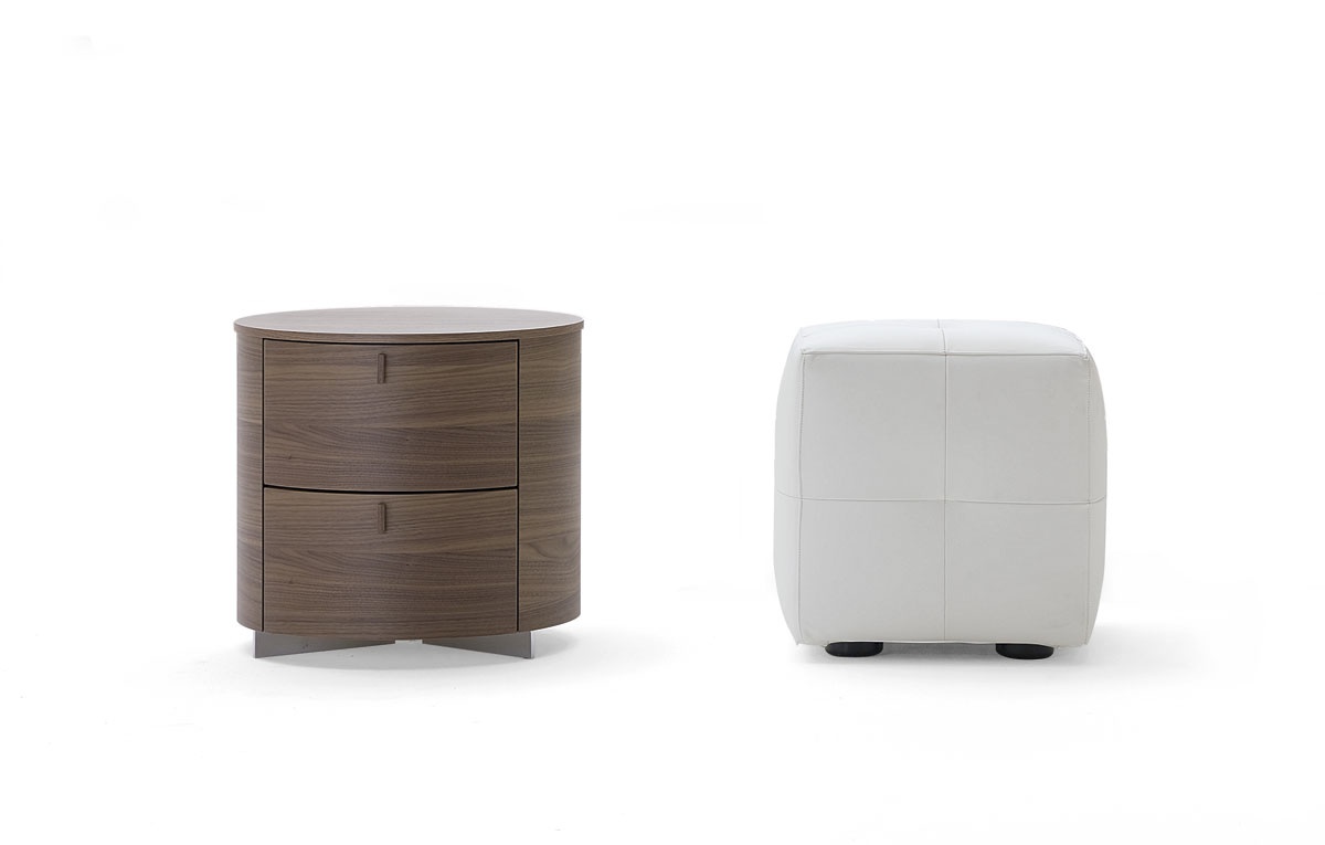 Bedside table Onda Italian manufacturer Poliform. Presents a model of oval bedside tables for small feet. The frame is made from wood, legs are metal. Model color dark wood. The modern style of execution.
