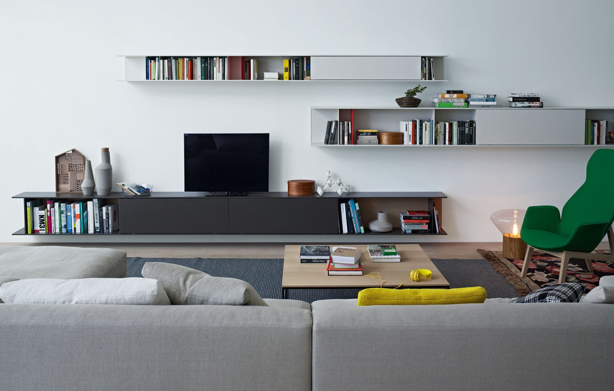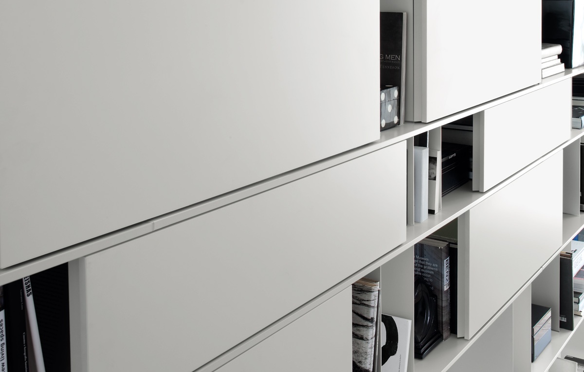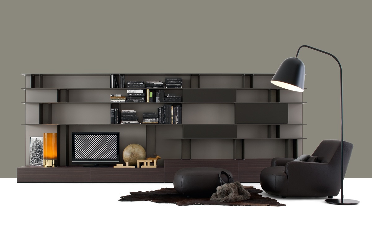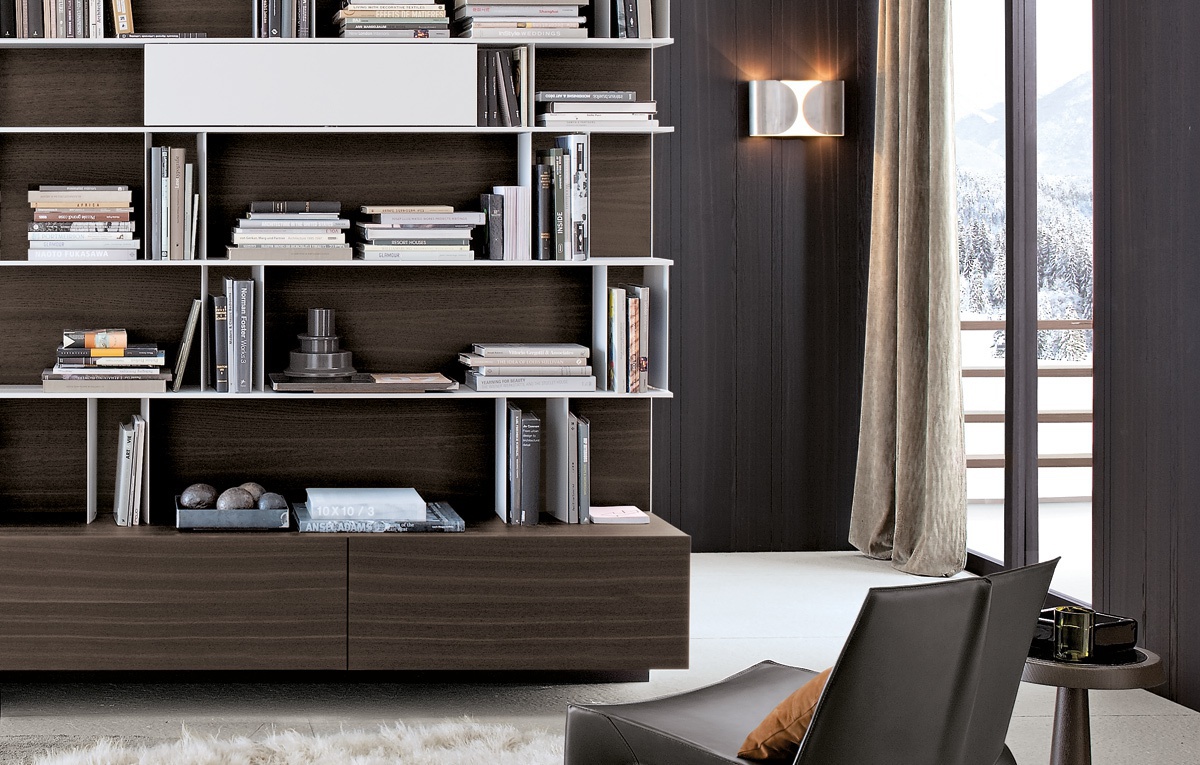 Modular storage system Skip the Italian manufacturer Poliform. The presented model systems to store books. Original open and closed shelves is simple and easy. Offered a choice of several color options. The modern style of execution.