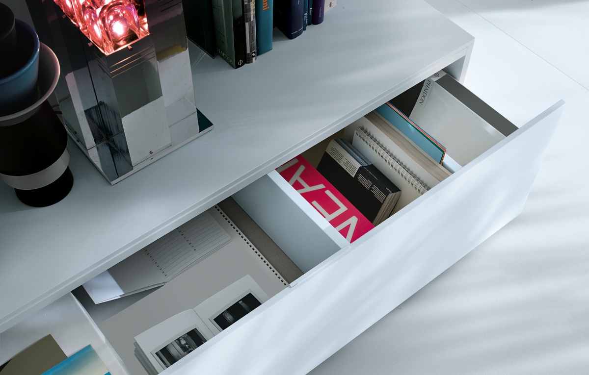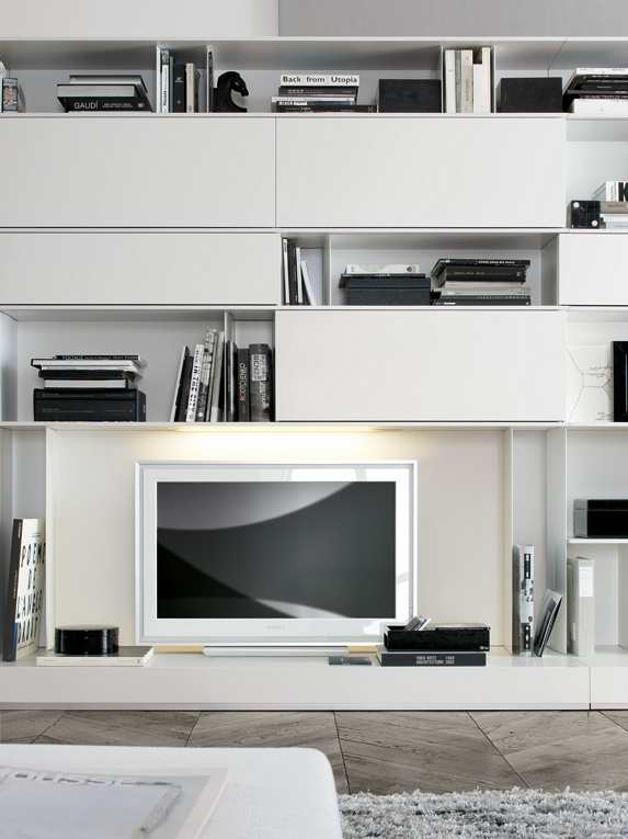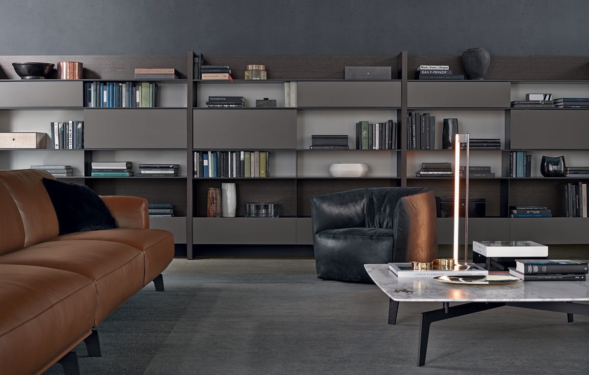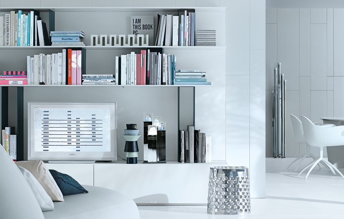 Modular storage system Skip the Italian manufacturer Poliform. The presented model systems to store books. Original open and closed shelves is simple and easy. Offered a choice of several color options. The modern style of execution.