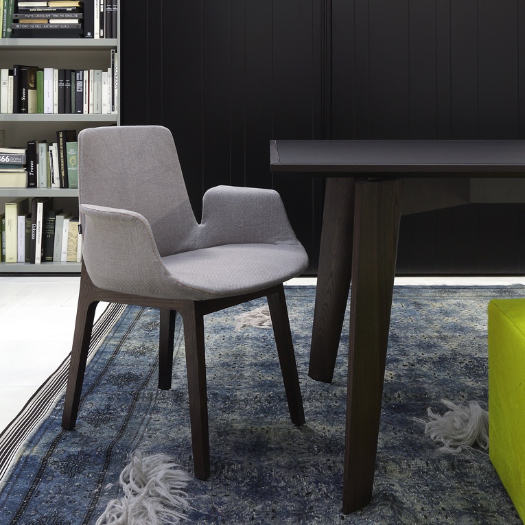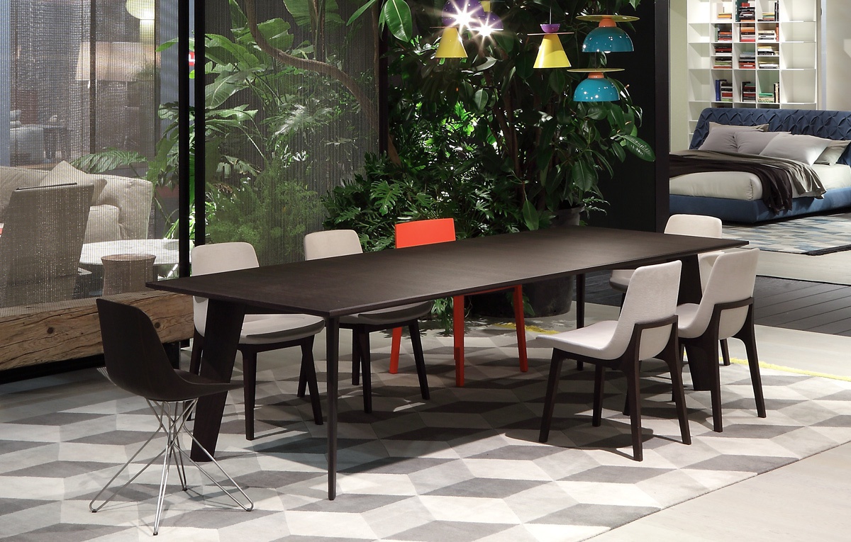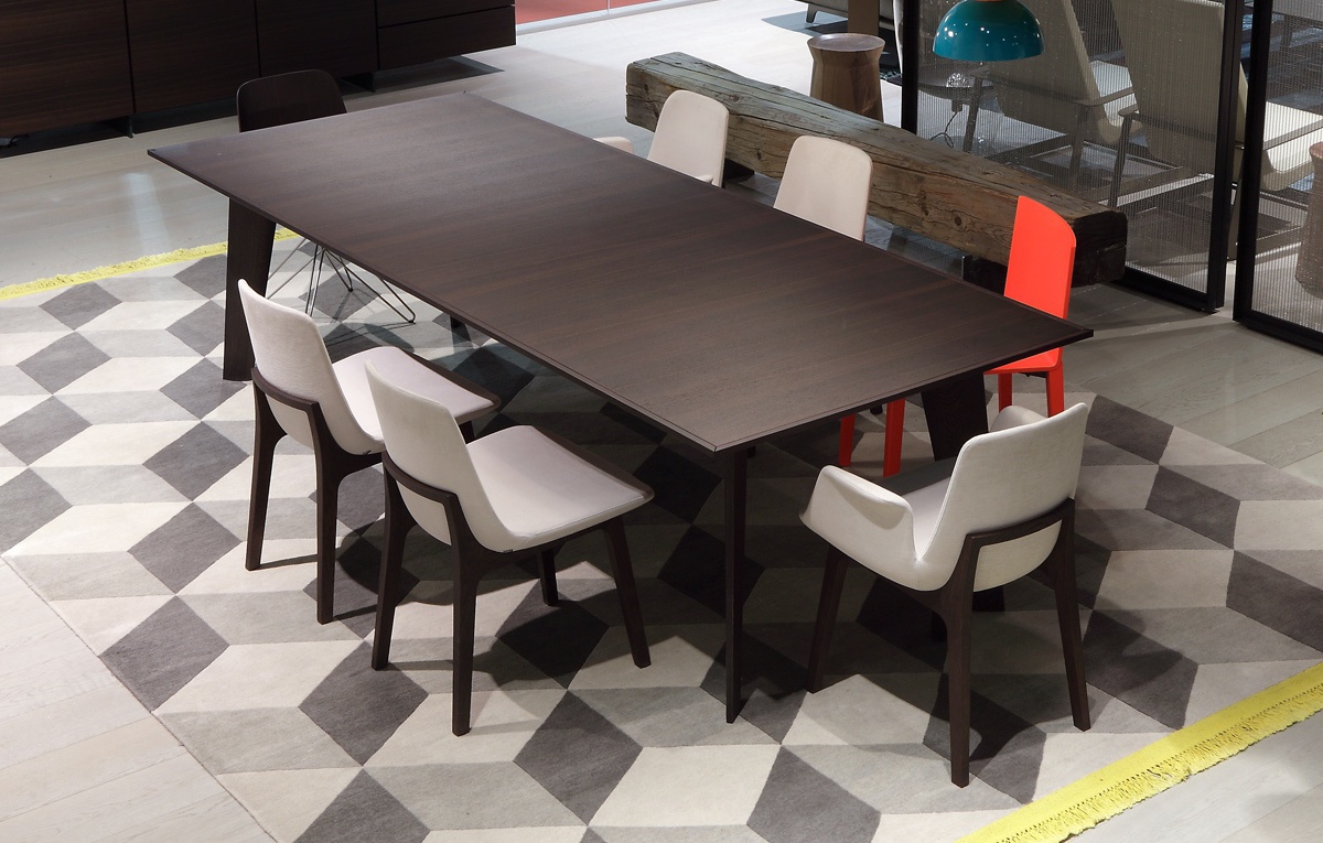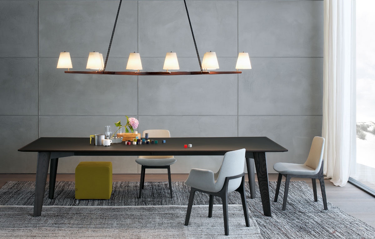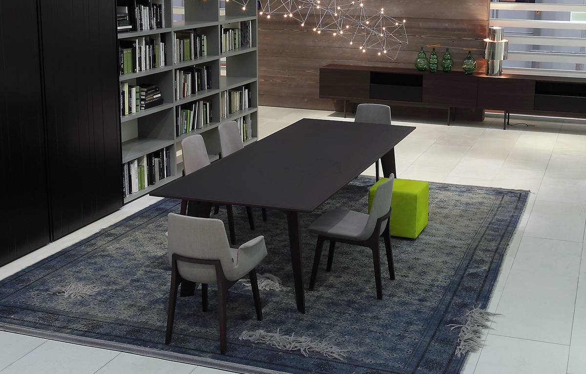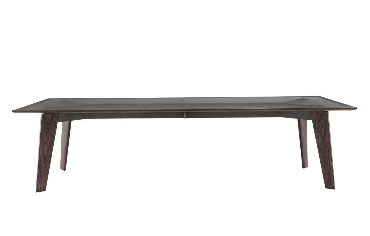 The Howard dining table Italian manufacturer Poliform. The table is made from solid wood on the original flat legs. Steel frame for strength. The tabletop is rectangular, the coating is a choice of smoky or transparent glass, marble(7 options) or wood(secondary wood) . Made in a modern style.