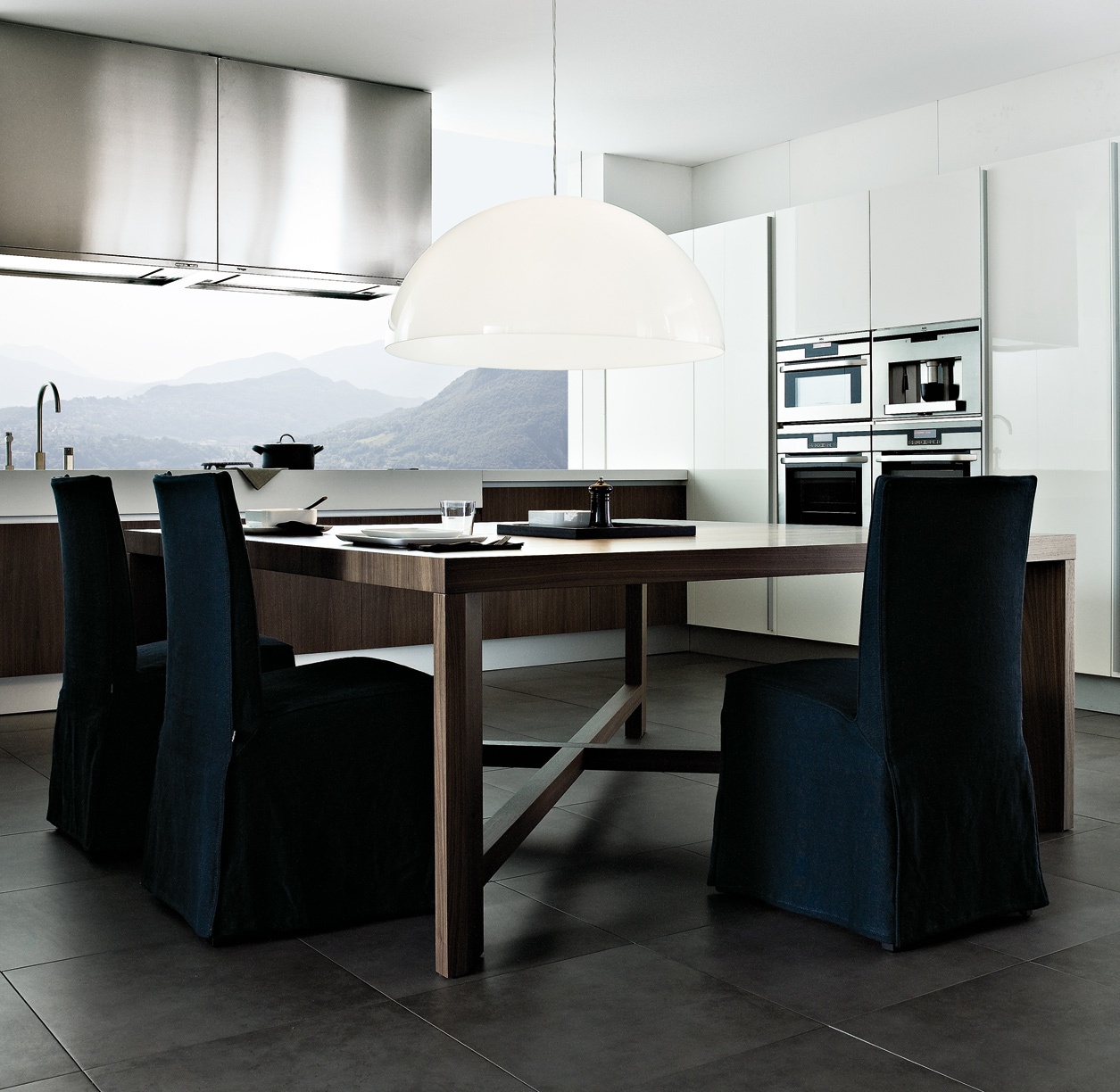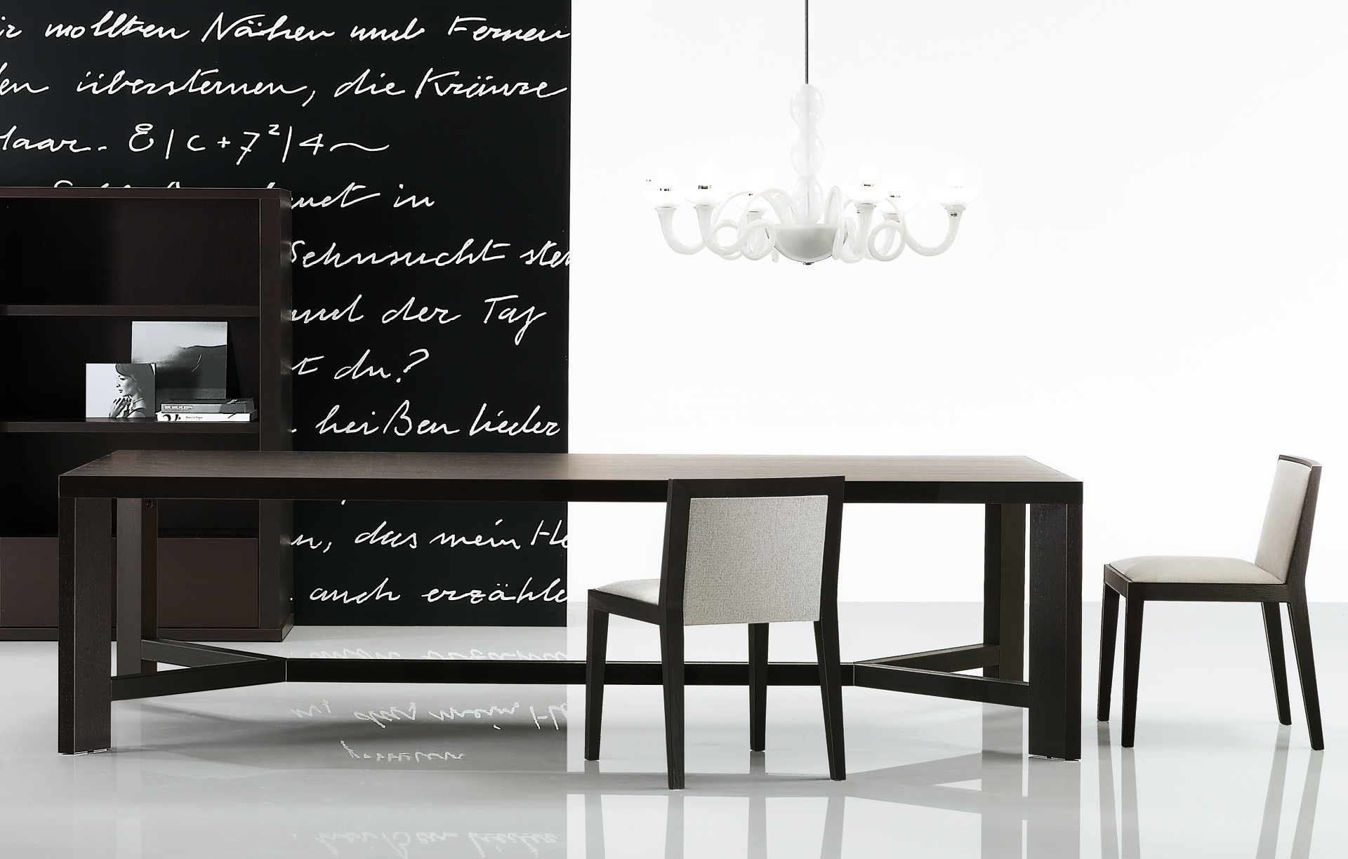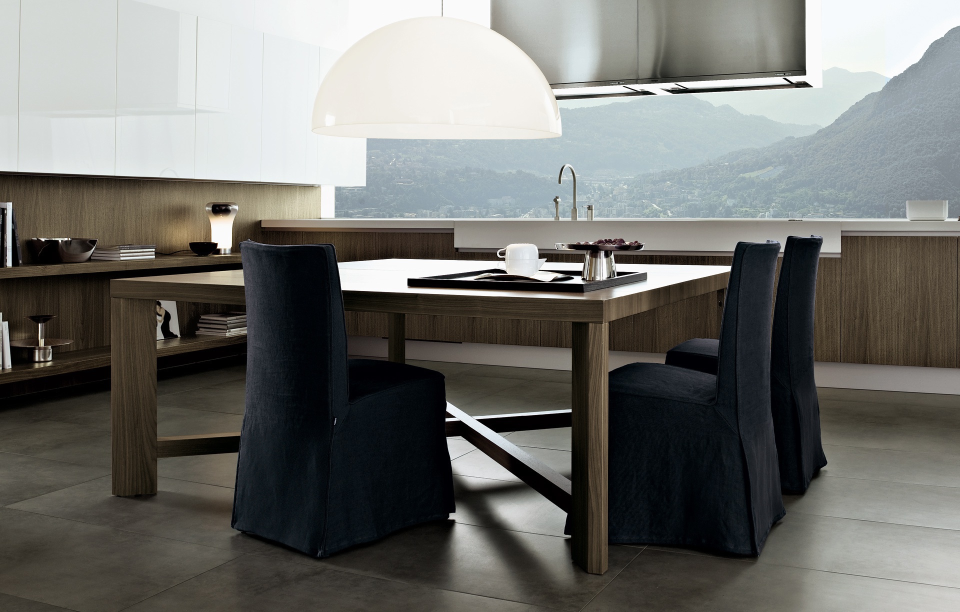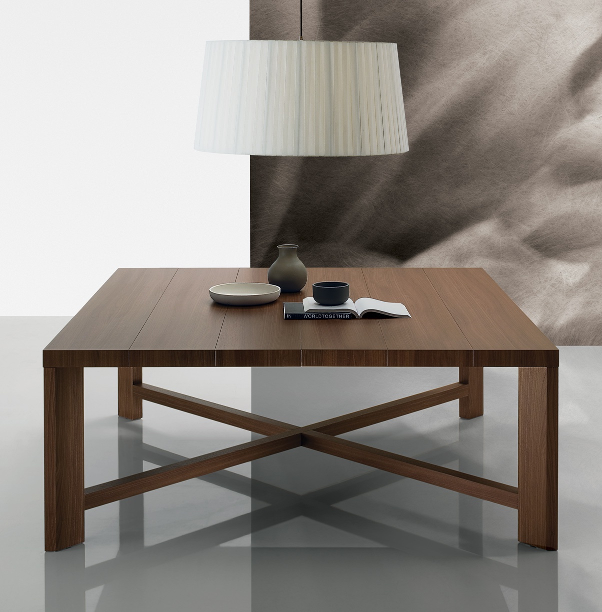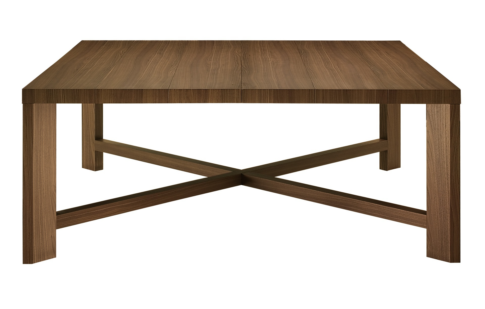 The Zeus dining table by Italian manufacturer Poliform. Presents a model of a square table. Legs with complex geometric shapes. The frame of this model made of solid wood. The modern style of execution.