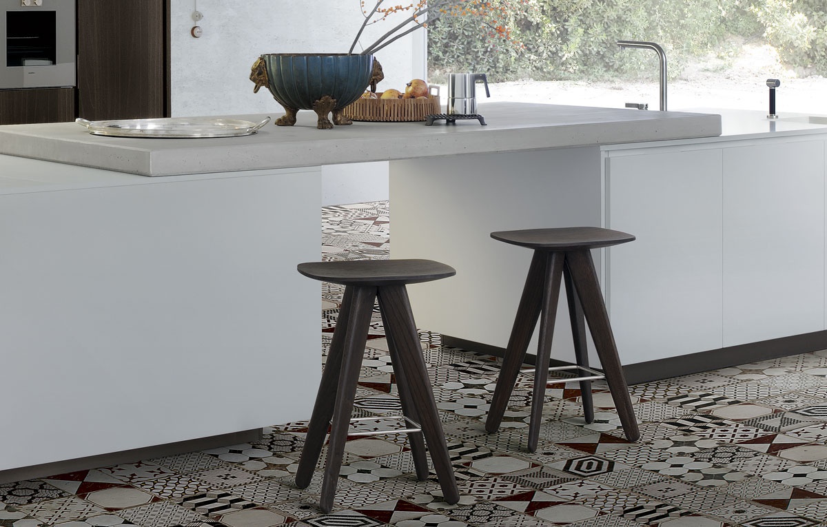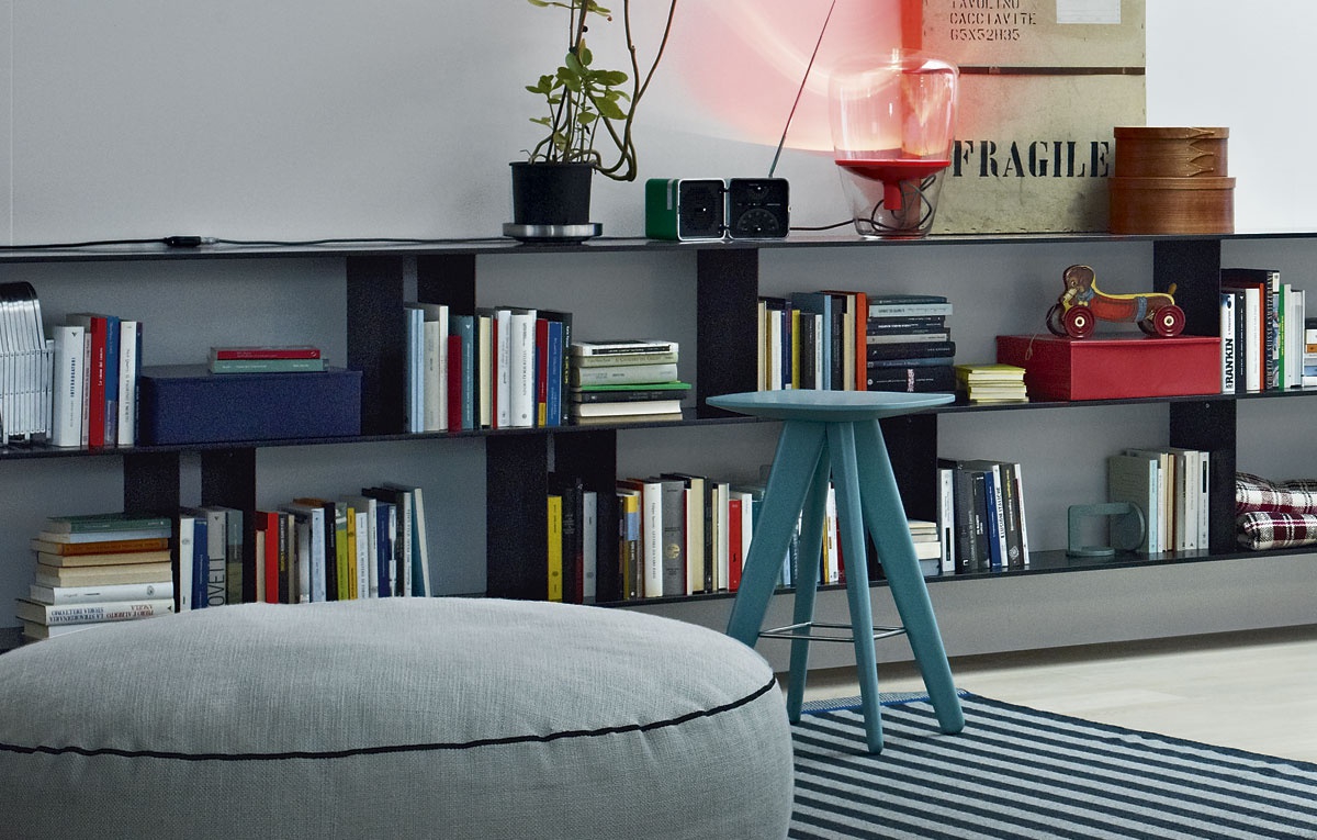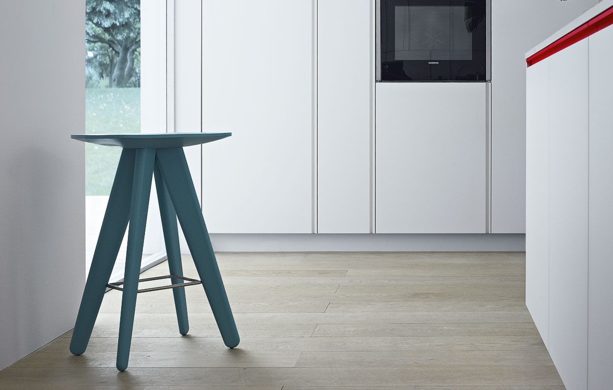 A three-legged stool ICS - IPSILON Italian manufacturer Poliform. Presents models of three-legged stools with various forms of seats. Color scheme possibly based on the number of items. The modern style of execution.