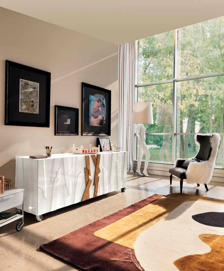 A chest of drawers from Italian manufacturer Bizzotto. Model with hinged doors on a frame of solid wood. Metal legs on wheels. Design complete insertion of basal wood (radiaca), 200 year old trees. Is characterized by spaciousness and elegance. Design solution for your interior living room.