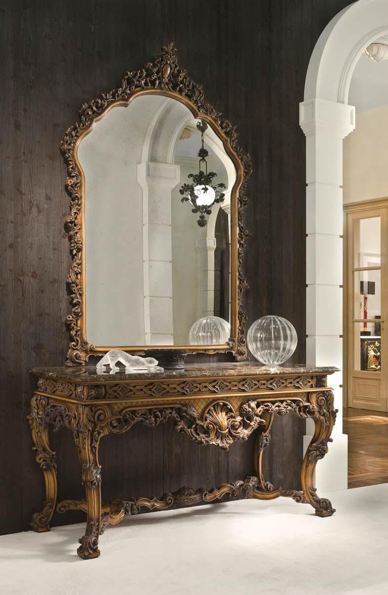 The console from the Italian manufacturer Annibale Colombo. Model figure on carved legs. Frame made of solid wood. The surface is covered with a glossy varnish. The feature gives design carving handmade. Made in a classic style.