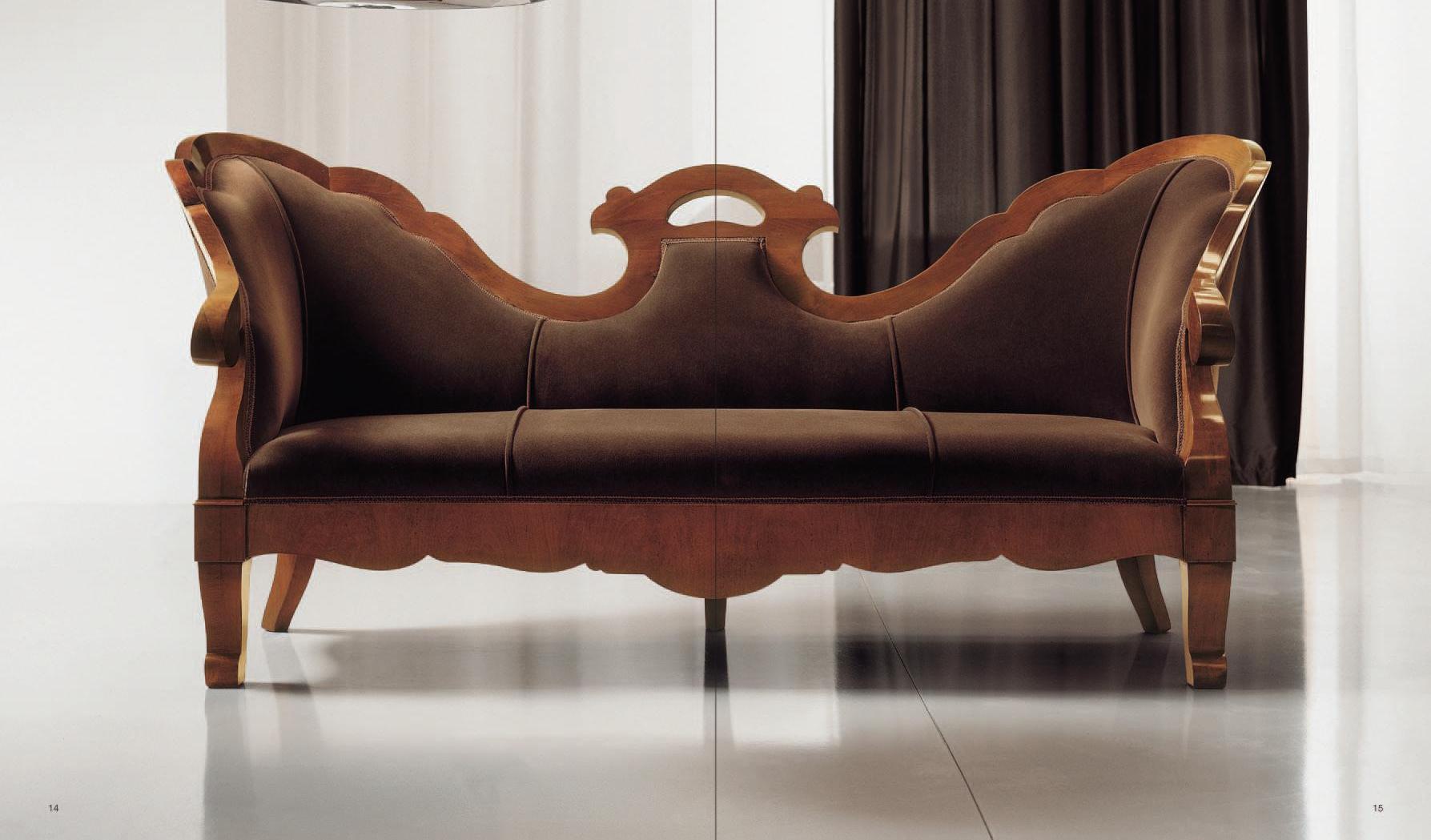 A double sofa from Italian manufacturer Annibale Colombo. Model with shaped backrest. The frame and legs of solid cherry wood. Option finishes in the catalog of the company. Seat and shaped back upholstered with textile or leather. Colors in the catalog to choose from.