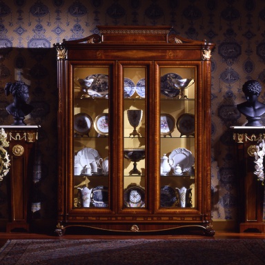 frame: solid wood sash: glass shelves: glass the surface: lacquered carving, inlay: handmade carved elements: gilding |