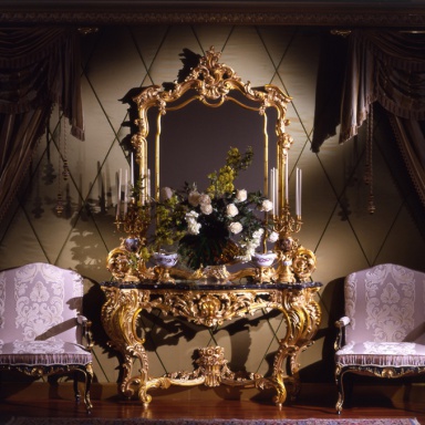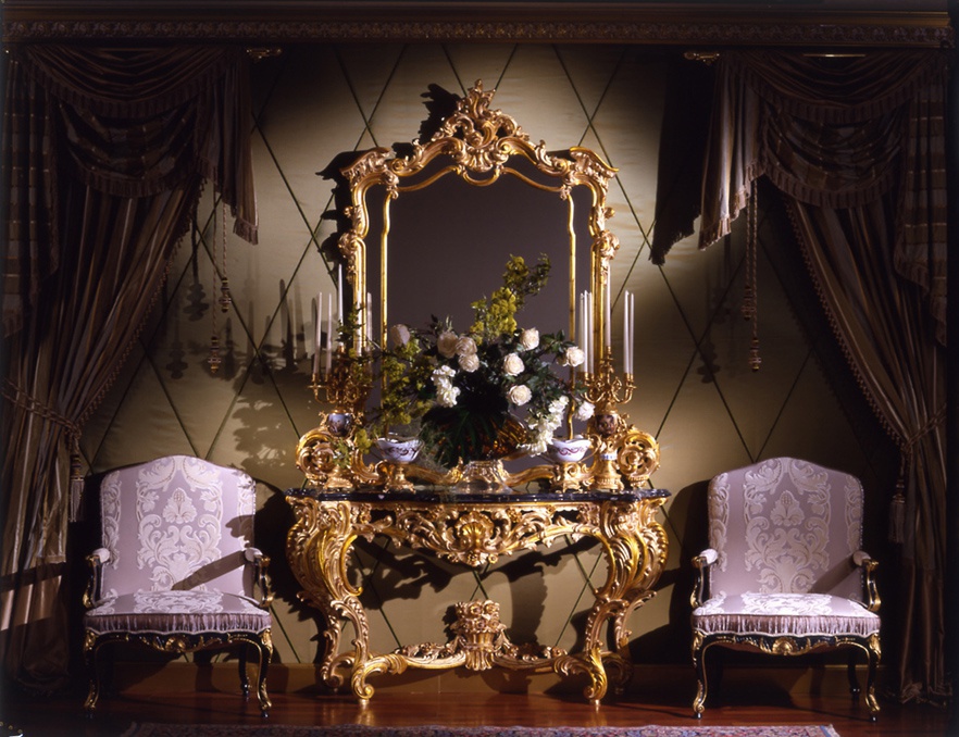 frame: solid wood top: marble the surface of the frame: gilding the surface of the frame: lacquered thread: handmade |