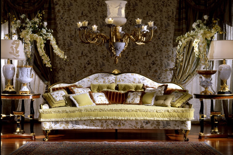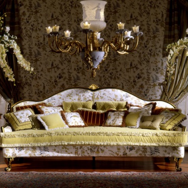 frame: solid wood upholstery: textiles filling: polyurethane foam (SPF) the surface of the frame: lacquered thread: handmade carved elements: gilding |