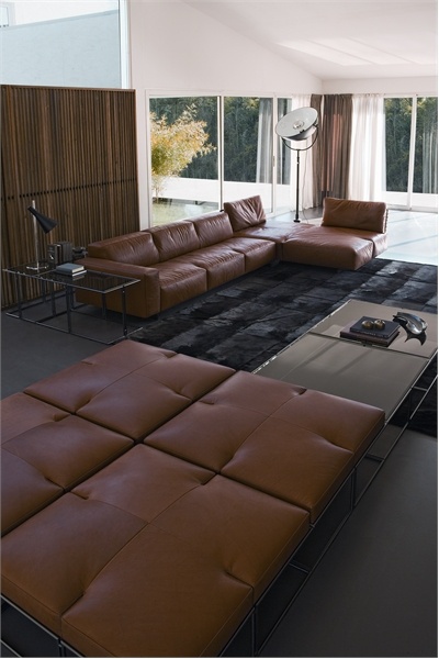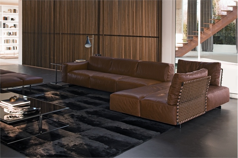 Corner modular sofa CUT, Rivolta. Due to the fact that the sofa is divided into sections, You can save Your living space. Model with Nikolaevym legs and upholstered in leather and textile. Colors according catalogue.