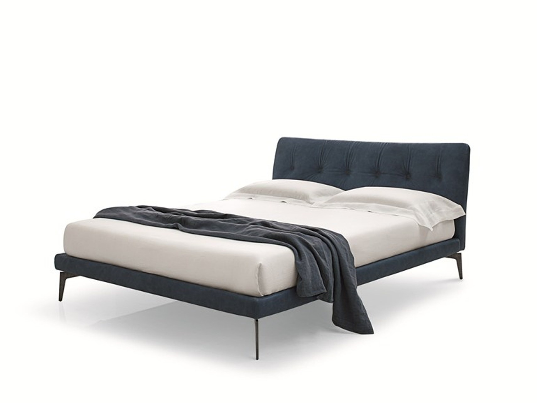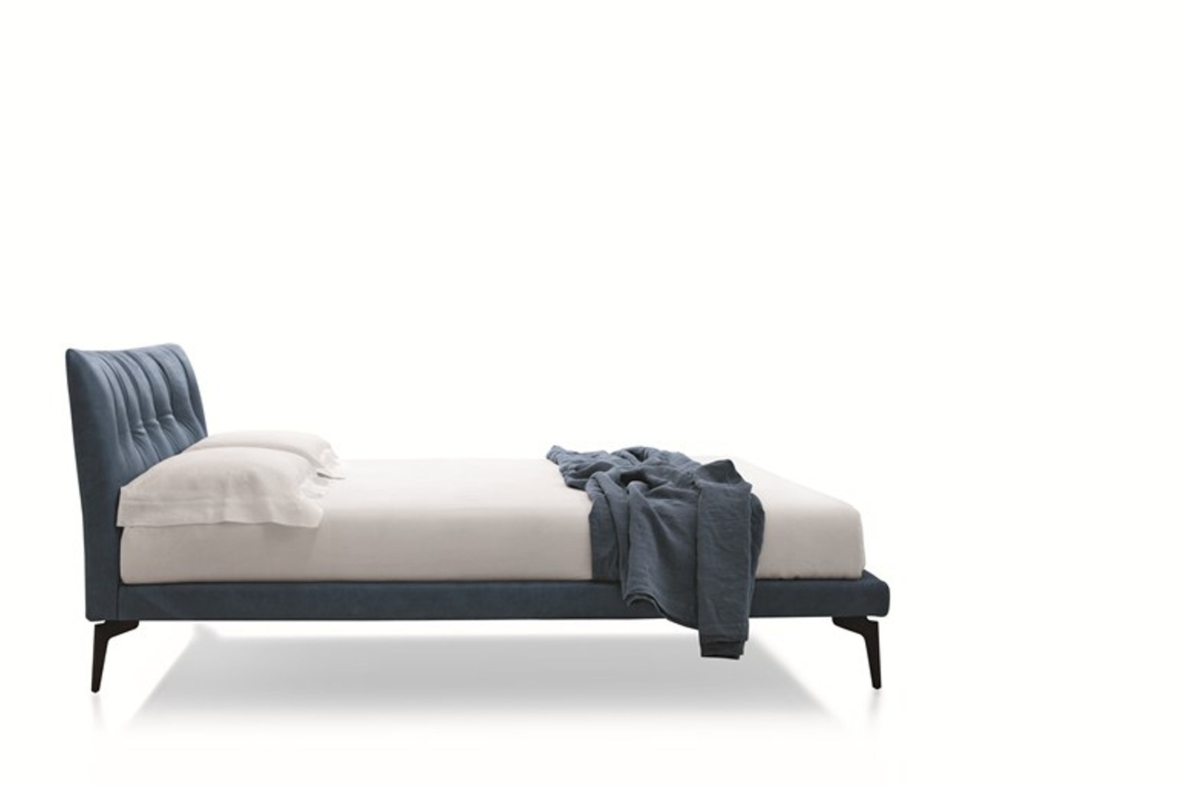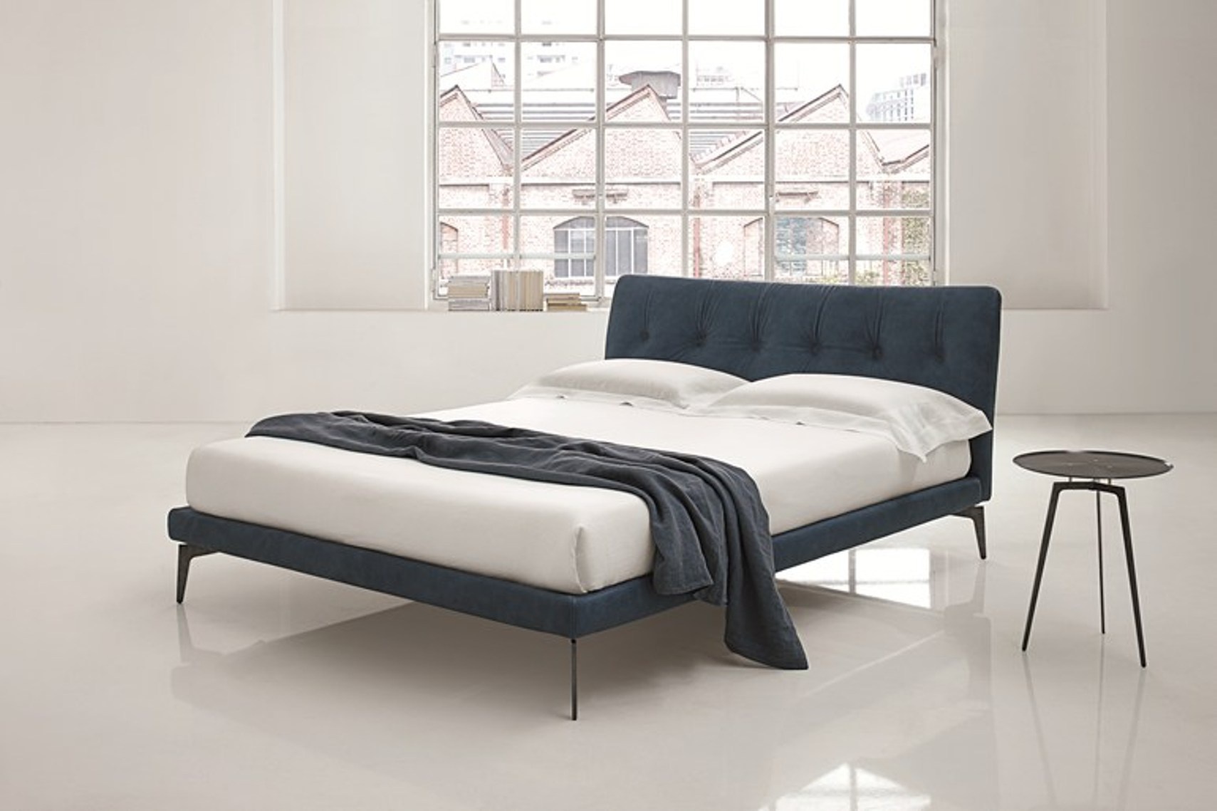 Double bed Arca Italian manufacturer Alivar. Presents a model of the bed with a soft headboard upholstered with leather or textile. Bed on low legs. The modern style of execution. The choice of color in stock.