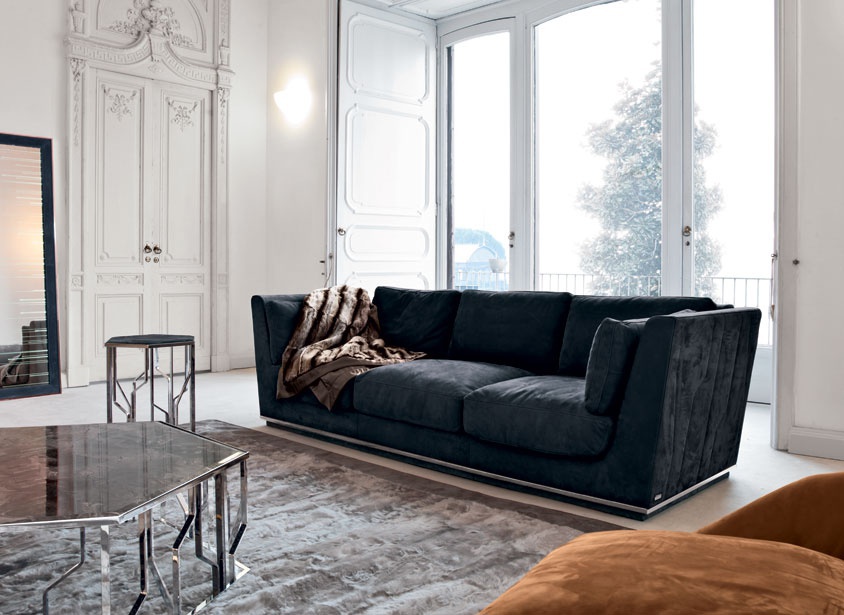 Nobu three seater sofa from Italian manufacturer Longhi. The model is made in modern style. Features give high armrests. Material - solid wood. Upholstery textile or leather. The seat cushion and backrest removable. The filler is made of non-deformable polyurethane foam and goose down. The fabric is removable.