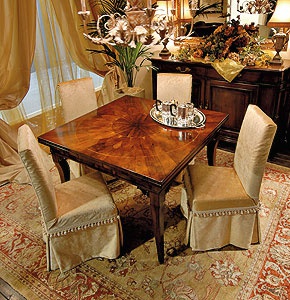 Folding dining table from Italian manufacturer DOLFI. The sliding square model the odds will certainly decorate dining room in classic style. Product color dark.