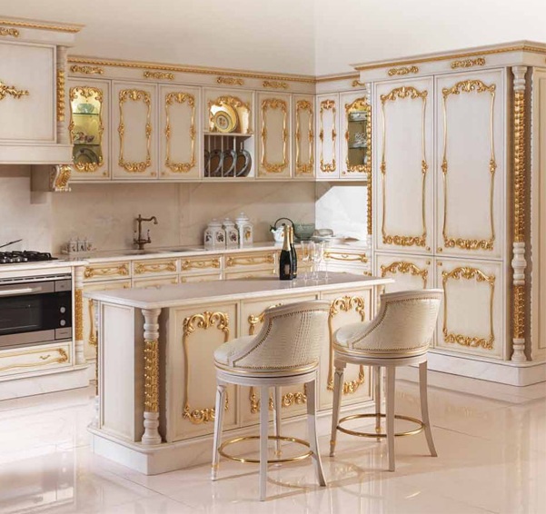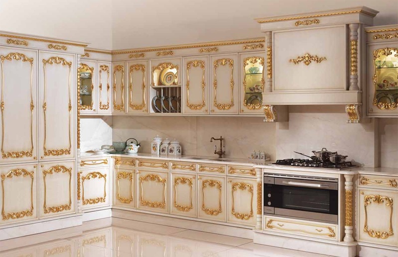 Set for the kitchen Italian manufacturer Angelo Cappellini. Presented kitchen set in white color with Golden decorative elements. Set with spacious drawers and hinged lockers. A style classic.