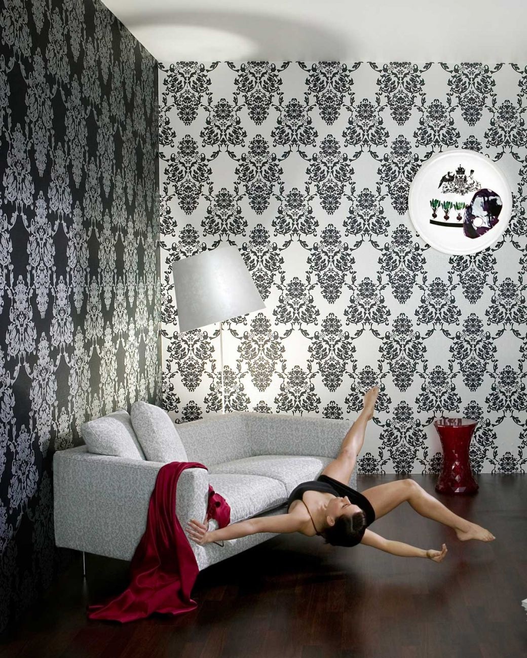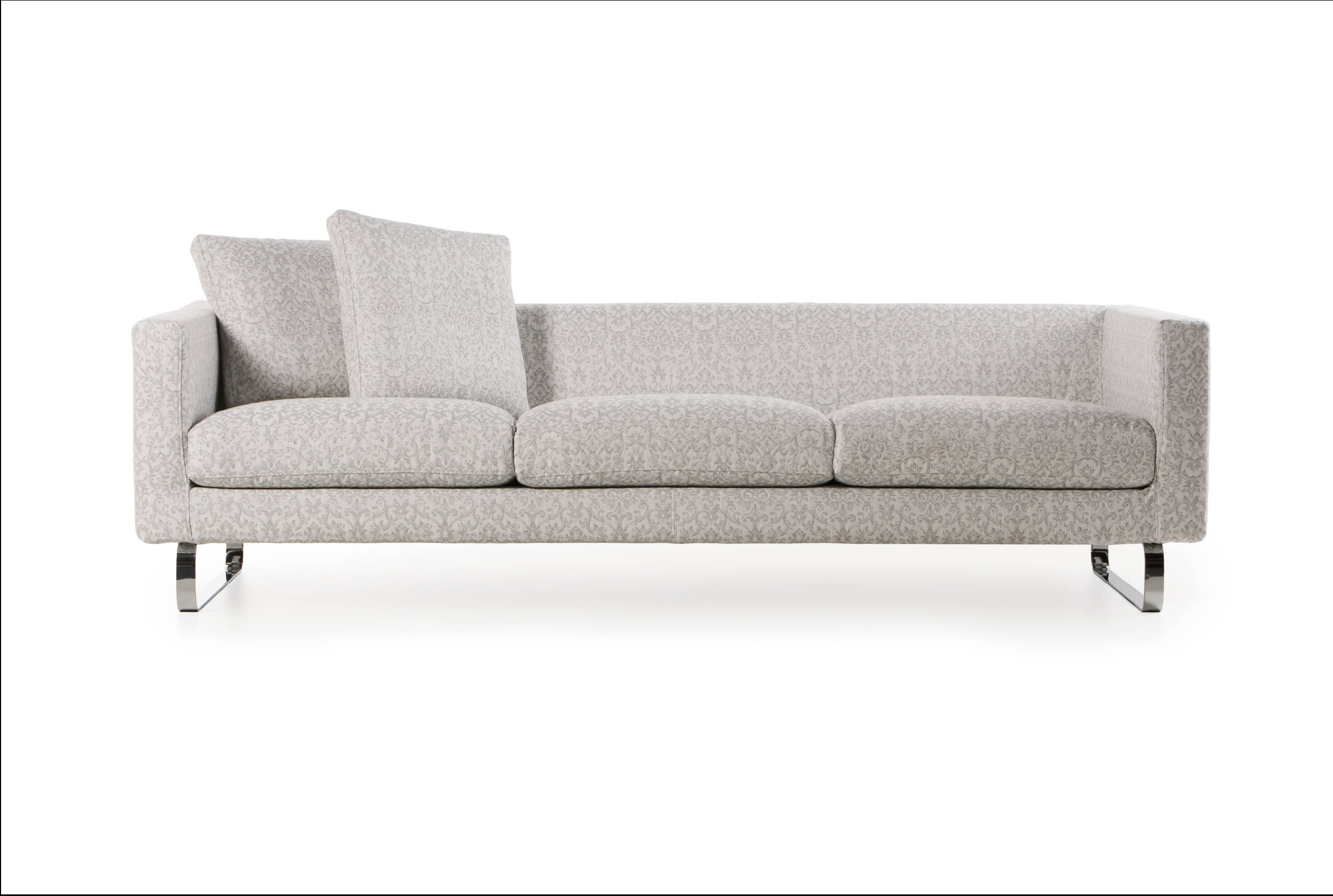 Sofa Boutique Silver from the Dutch manufacturer Moooi. The frame is made of steel. Filler - polyurethane foam. Upholstery is 50% polyester, 48% viscose, 2% polyamide. The padding is impregnated with Teflon and has a fire resistant coating. Product color - silver, with ornament. The model is supplemented with decorative pillows. Available in several configurations: armchair, double and triple sofa. Additionally, you can buy stylish pouf, made in the same color scheme and similar design.