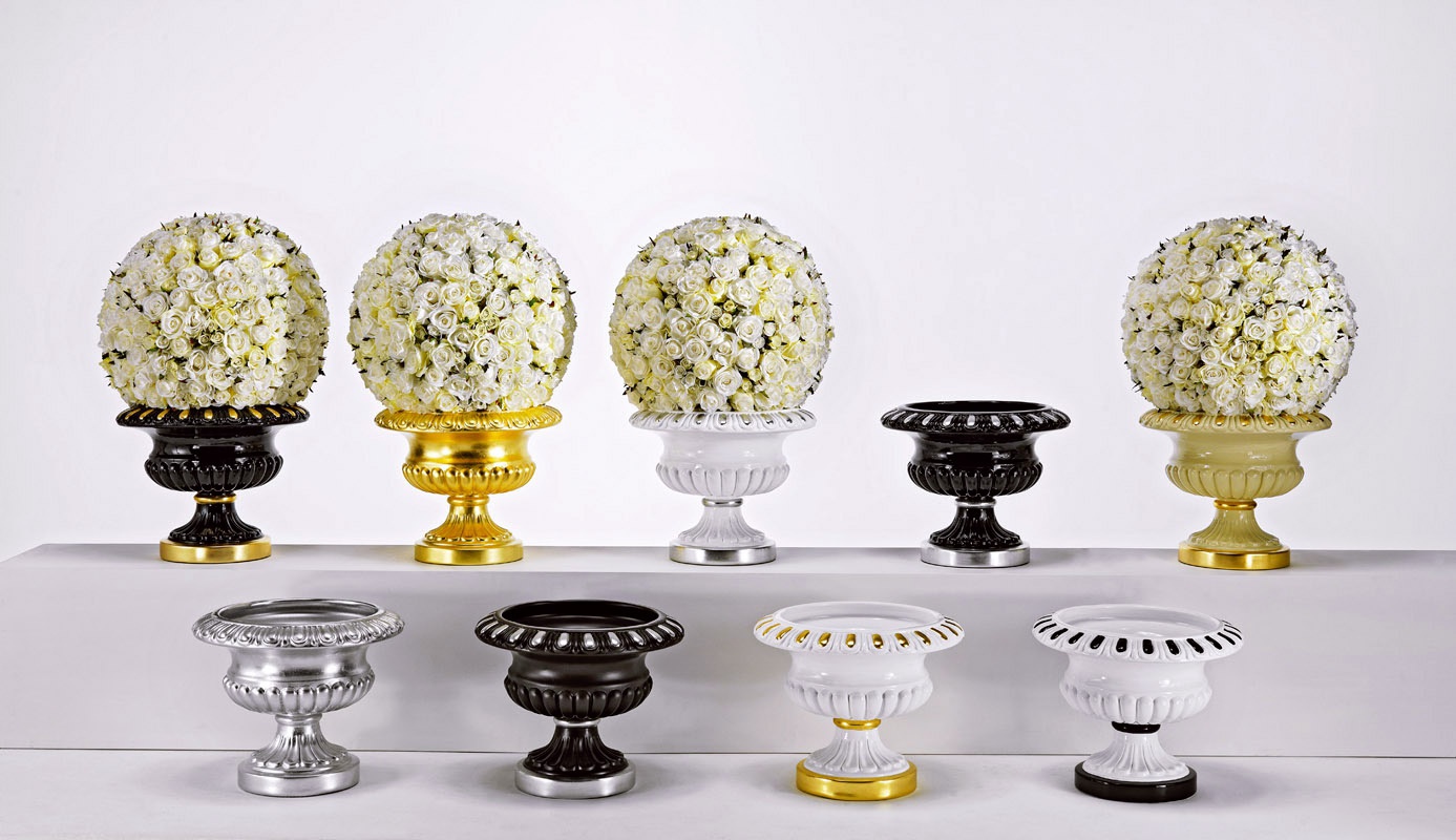 Rounded vase Amphora Italian manufacturer Vismara. Presents a model of round vases on curly stalk. Made of natural wood. The coating can be selected from a catalog from the manufacturer. Will perfectly complement a modern interior.