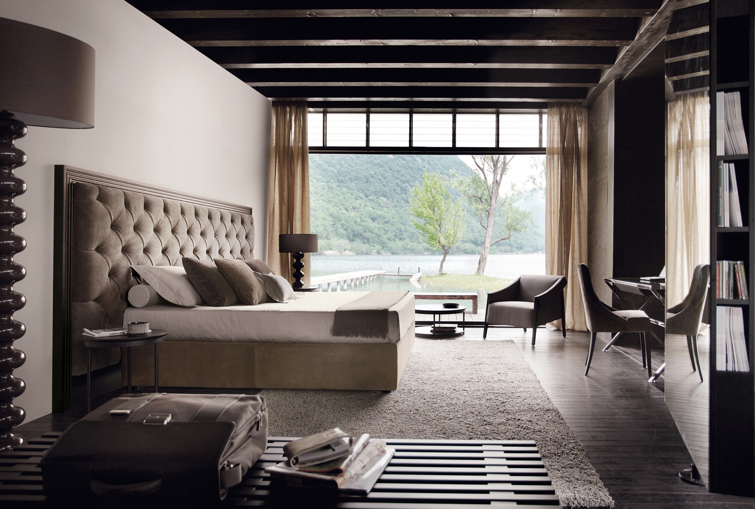 The Enya double bed capiton from the Italian manufacturer Porada. The model with upholstered headboard is embellished with stitch Capito. Upholstery - leather or textile. Bed frame and headboard made of solid wood. Colours in stock. The product is designed in modern style.