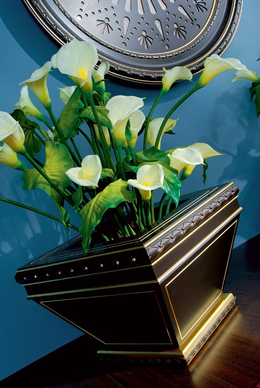 Flower pot Flowers Italian manufacturer Vismara. Represented by a low square pot for flowers. Perfectly complement modern interior living room or office. Color the pot black with decorative carvings and Golden paintings.