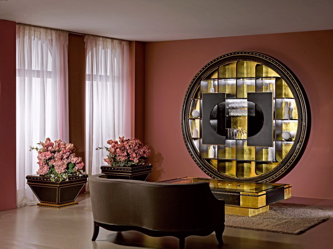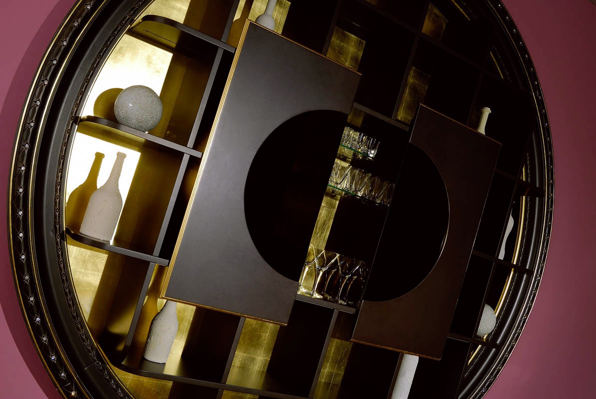 Wall bar Cabinet Bar Star Gate Container Italian manufacturer Vismara. Bar in a circular frame of round shape. Equipped with open shelves and bar with sliding doors. Perfectly complement modern interior room or bar.