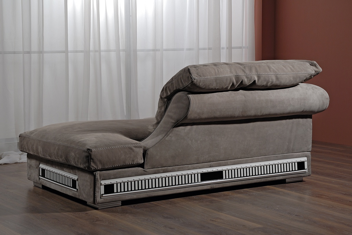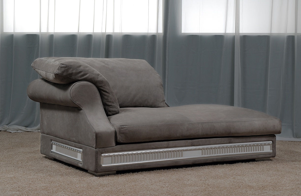 Couch Nouveau Confort Italian manufacturer Vismara. The couch is upholstered gray. The filler is polyurethane foam. The hem of the couch are decorated with metal panels in the art Deco style.