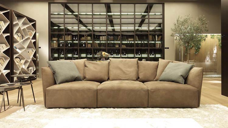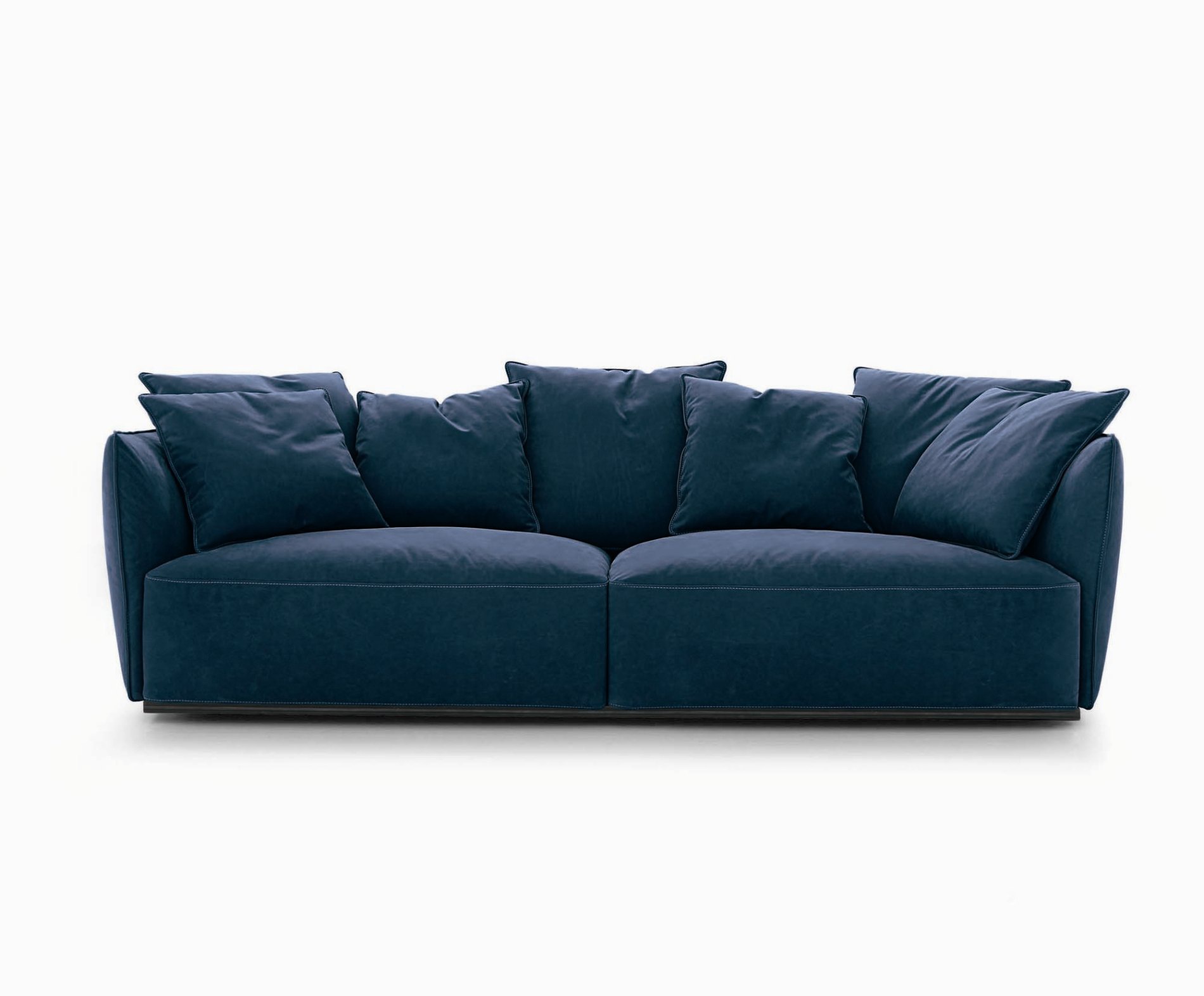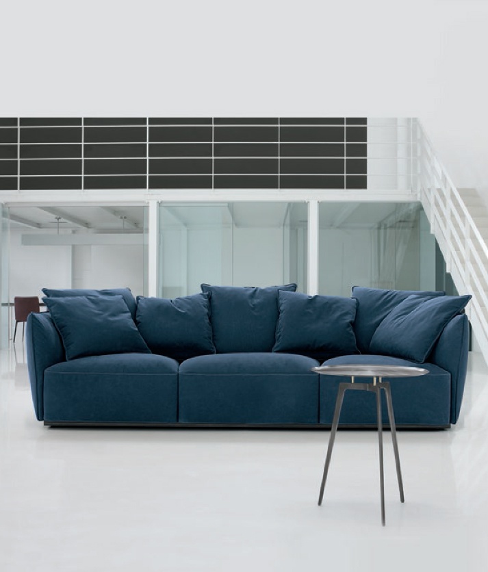 Sofa with the shape memory Blow from the Italian manufacturer ALIVAR. Upholstery - textiles / leather. The frame is metal and wood. The cushions are made of polyurethane foam and sterilized quilted goose down. The model is made in modern style. Colours in stock. The model is also available in a modular(sectional version).