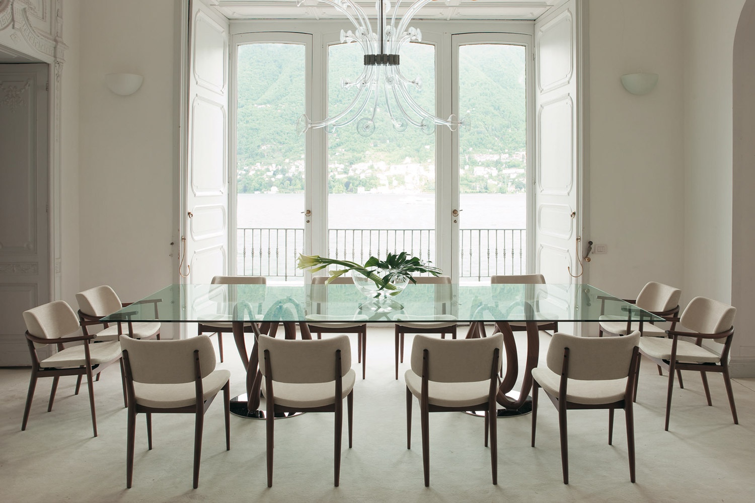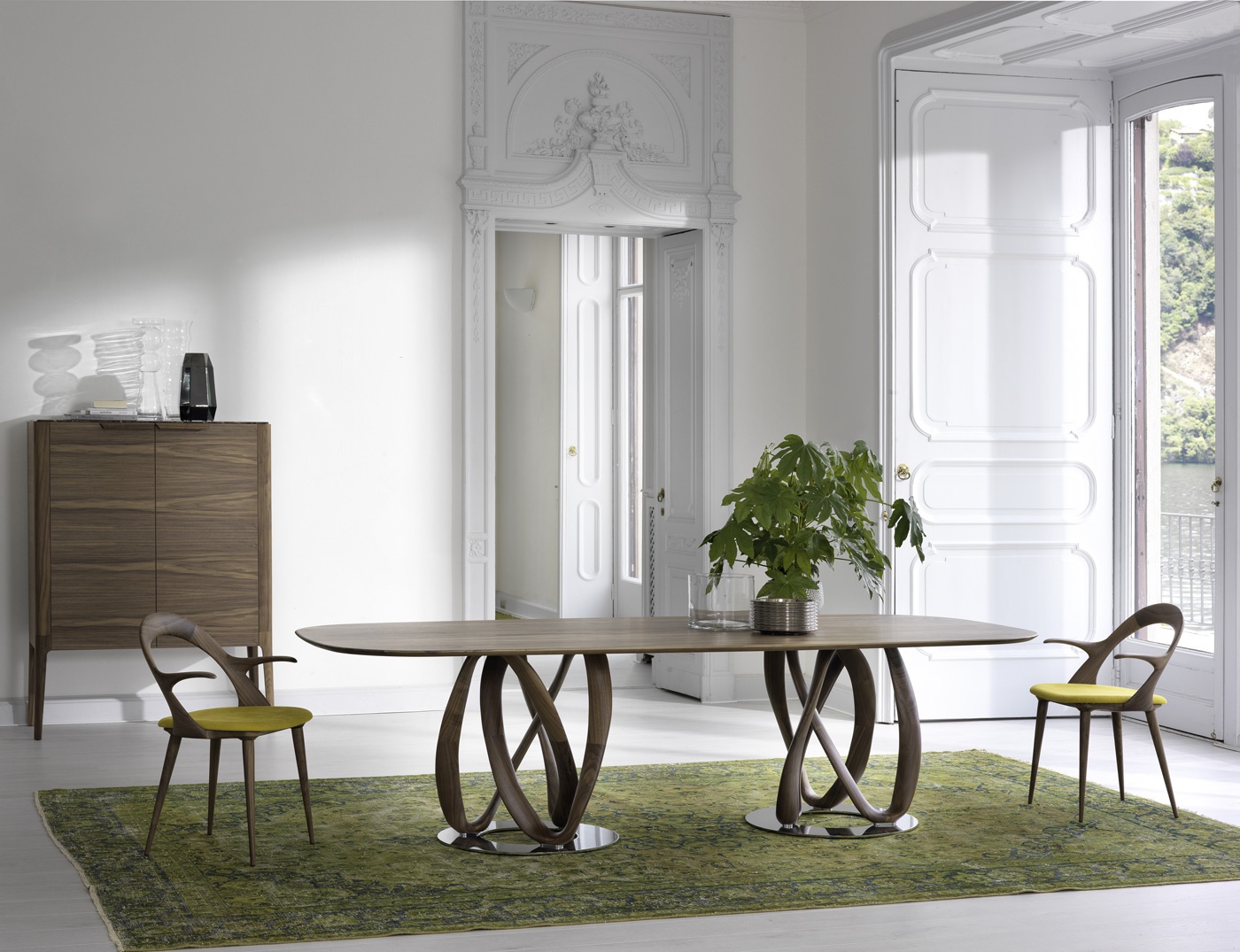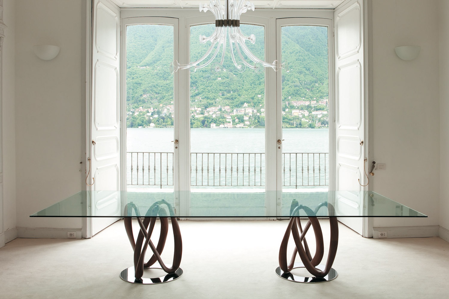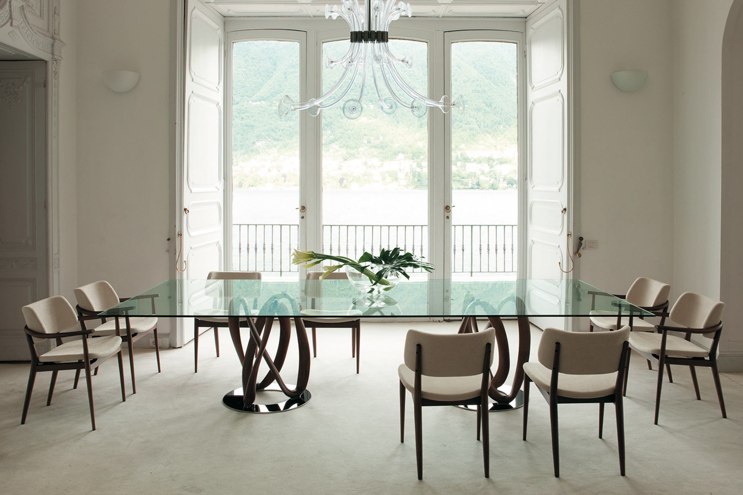 Infinity dining table by Italian manufacturer Porada. Table of solid ash or walnut on chrome metal base. The tabletop is made of wood or solid glass. A model of this table is made in modern. The model comes with top of different sizes and configurations. Color and sizes in stock.